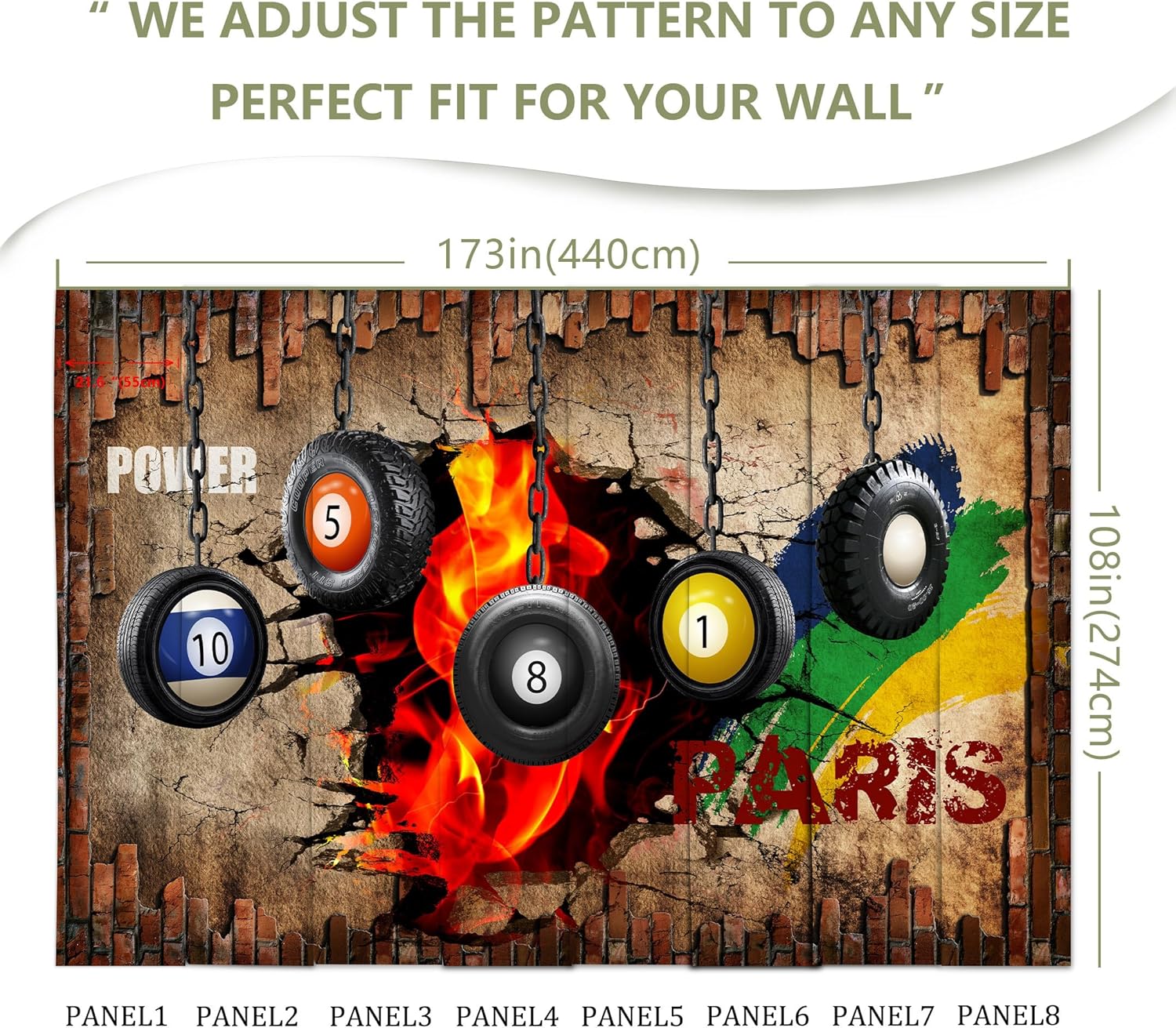 Industrial Wallpaper Billiard Tire Wall Mural for Pool Room(Not Peel and Stick)