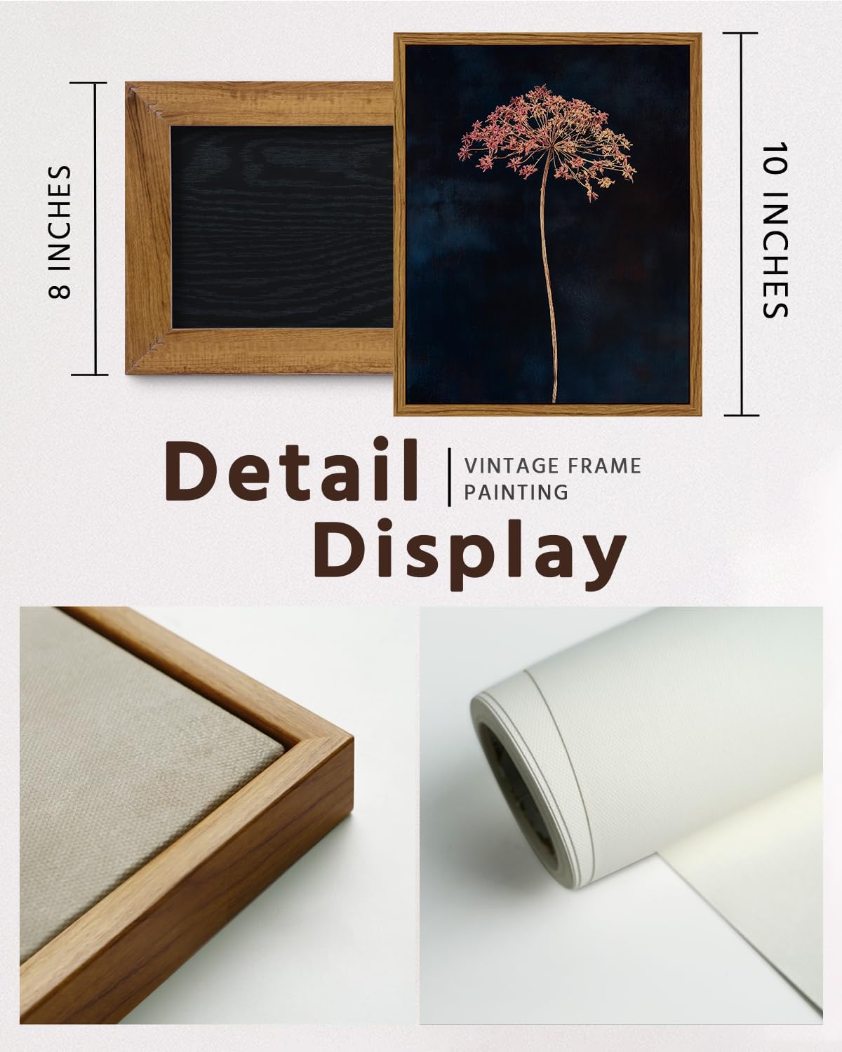 VIYYIEA Framed Canvas Wall Art, Dried Flowers Wall Art for Living Room, Plant Oil Painting Picture, Vintage Home Decor, Bathroom Wall Decor -【Queen Anne's Lace】-(10L x 8W)