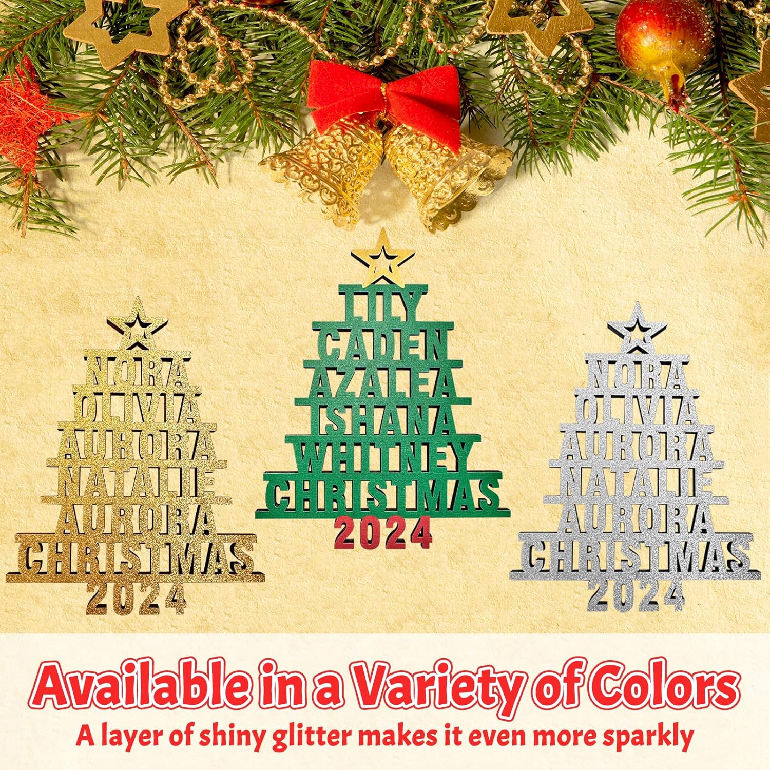• 【Multi-Color Styles Available】: Personalized Christmas tree name ornaments are available in 3 colors and styles. Buy according to your favorite style, and the warm Christmas decoration will not forget every member of the family