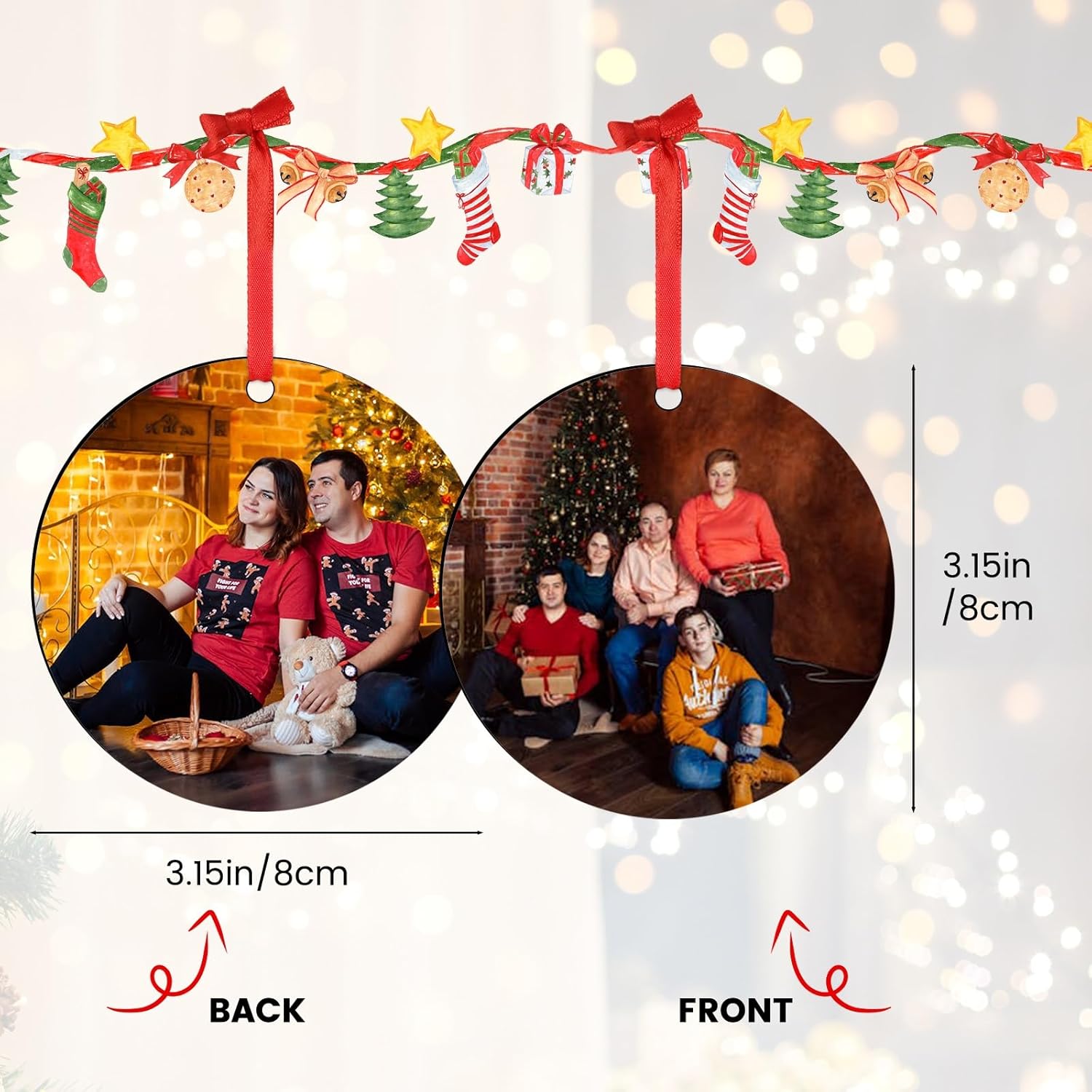 - Double-sided Printing Wood Ornaments: The custom ornament is made of high-quality wood material, which can print different patterns on both sides for you. Its high-definition printing ensures clear and upscale appearance, preventing pictures from fading. This custom photo Christmas ornament is a lasting keepsake to remember your unforgettable holiday forever