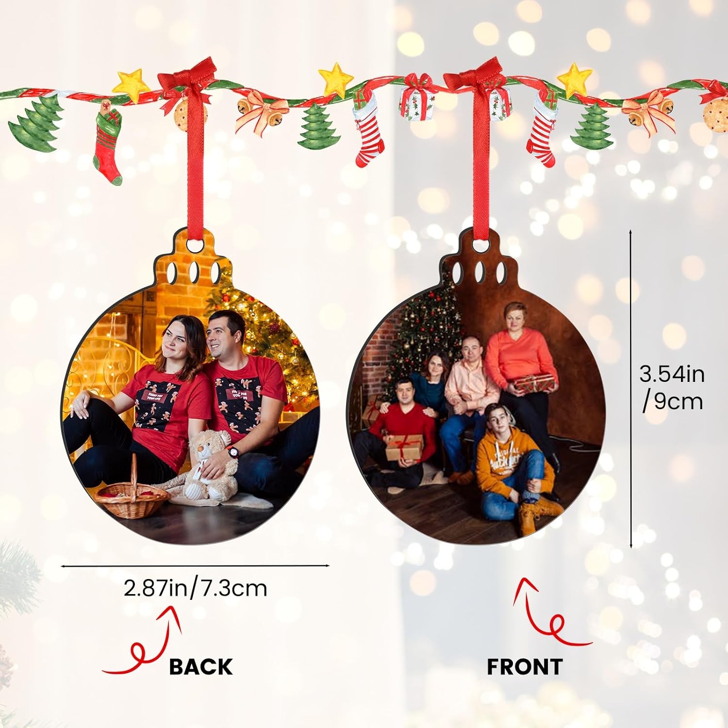 - Double-sided Printing Wood Ornaments: The custom ornament is made of high-quality wood material, which can print different patterns on both sides for you. Its high-definition printing ensures clear and upscale appearance, preventing pictures from fading. This custom photo Christmas ornament is a lasting keepsake to remember your unforgettable holiday forever