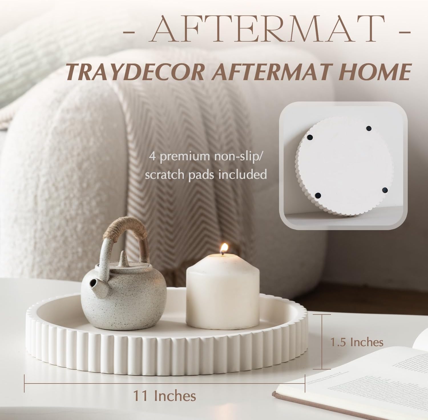 • Timeless Aesthetic: Inspired by clean Scandinavian design elements, it's a neat little solution to keep everything in check. The grooved concrete bestows upon the AFTERMAT tray a sense of modern elegance, harmonizing exquisitely with understated home décors.