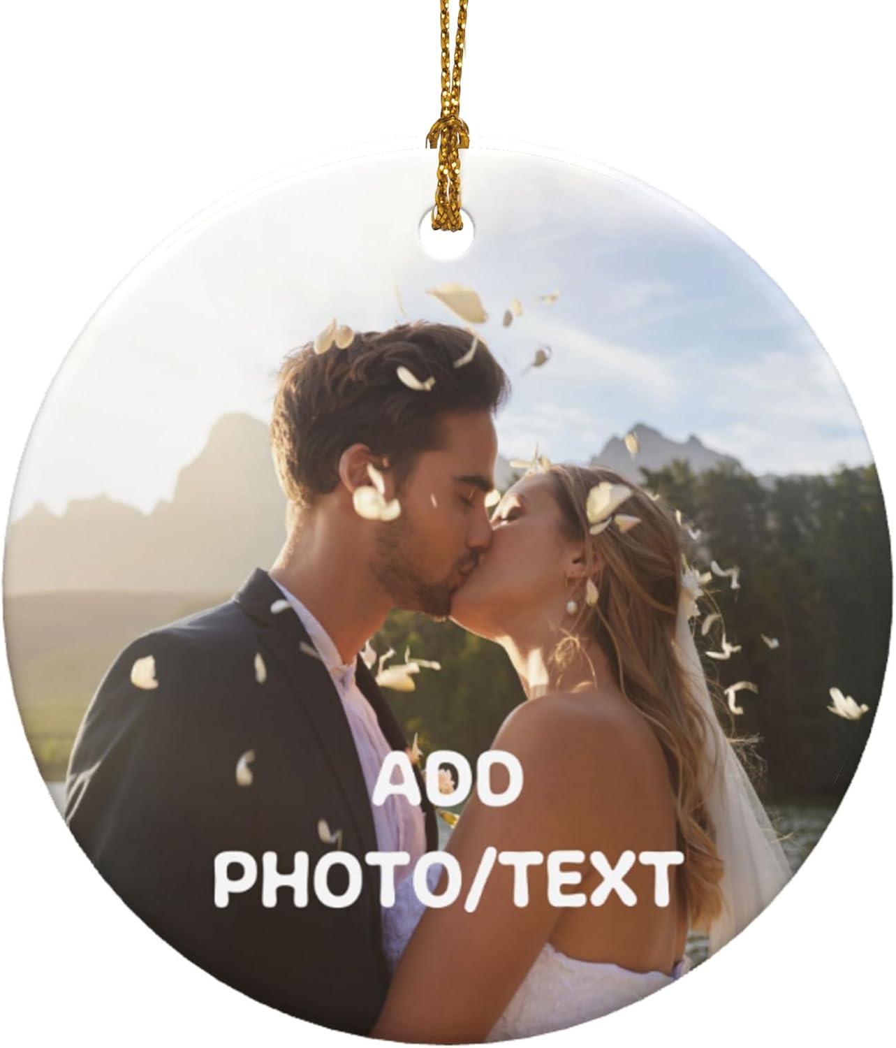 - High-Quality Personalized Ornaments---This custom Christmas ornaments are made of high quality ceramic, 3’’, and has smooth touch feeling. And used advanced thermal transfer technology make print effect looks wonderful, it will never fade you can design it on Christmas tree, door or outside.