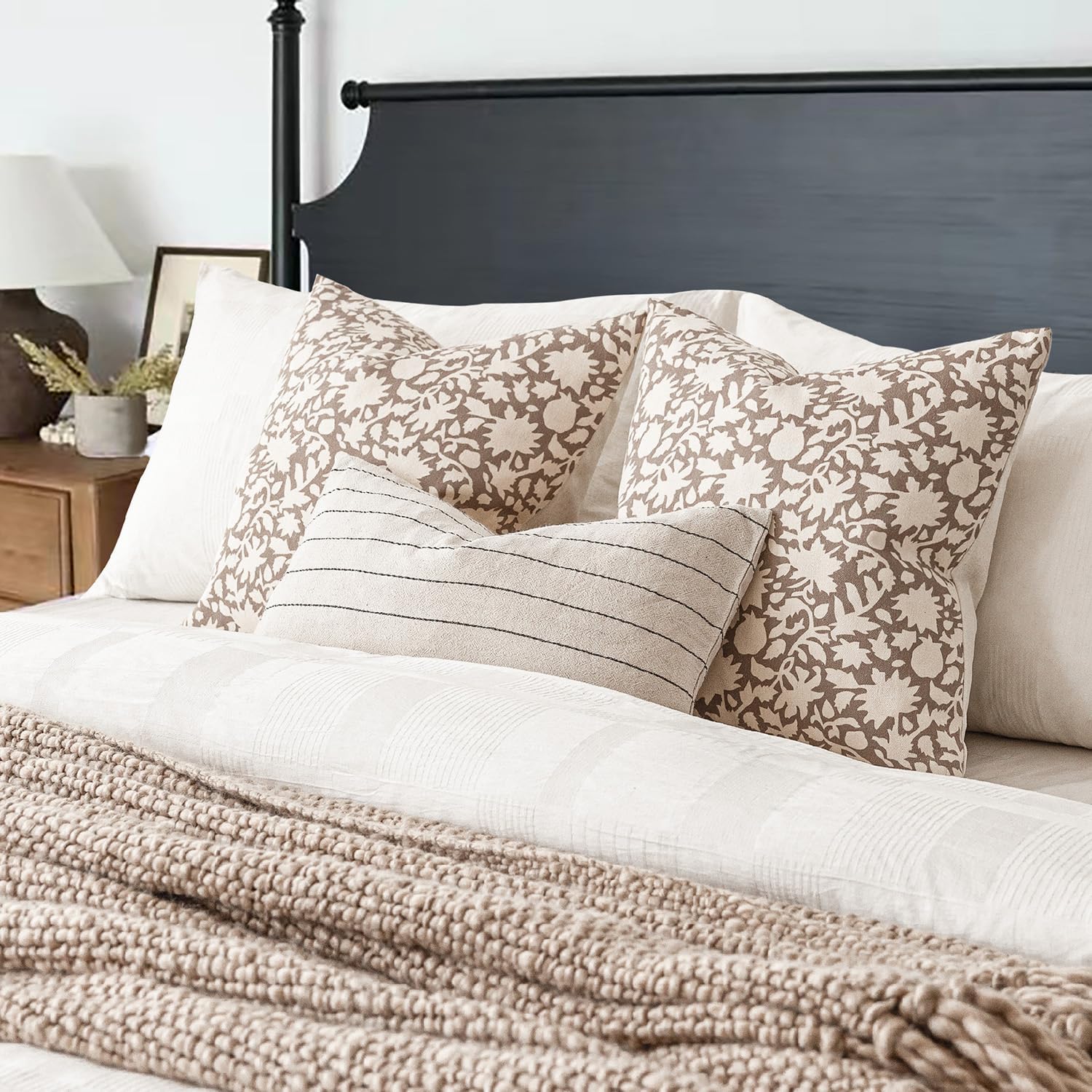 Foindtower Set of 2 Decorative Neutral Floral Throw Pillow Covers Accent Farmhouse Cushion Covers Boho Vintage Pillowcase for Couch Sofa Bedroom Living Room Home Decor Outdoor,24×24 Inch,Tan
