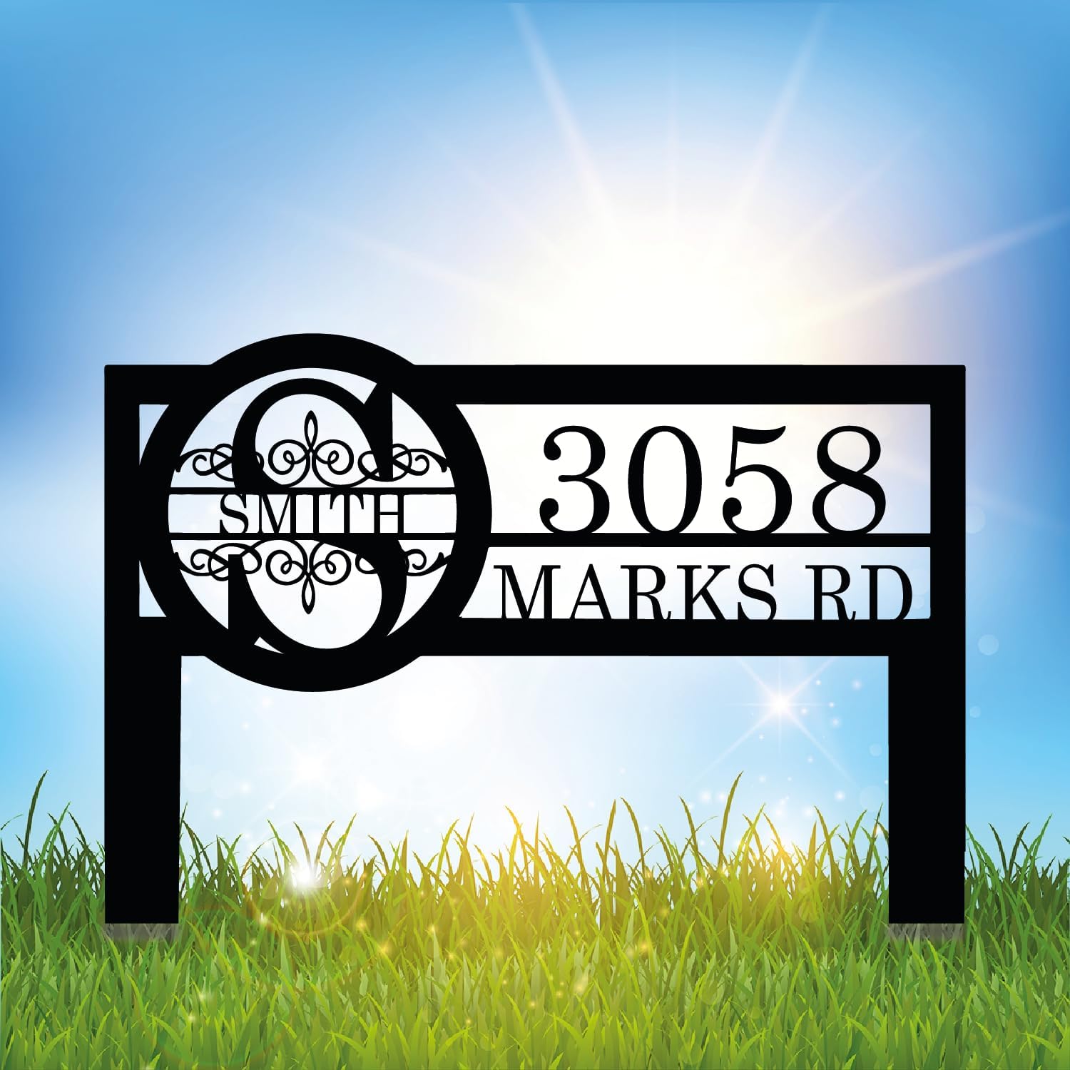 Personalized Metal Yard Address Sign with Last Name and Monogram, House Number Sign for Lawn and Patio