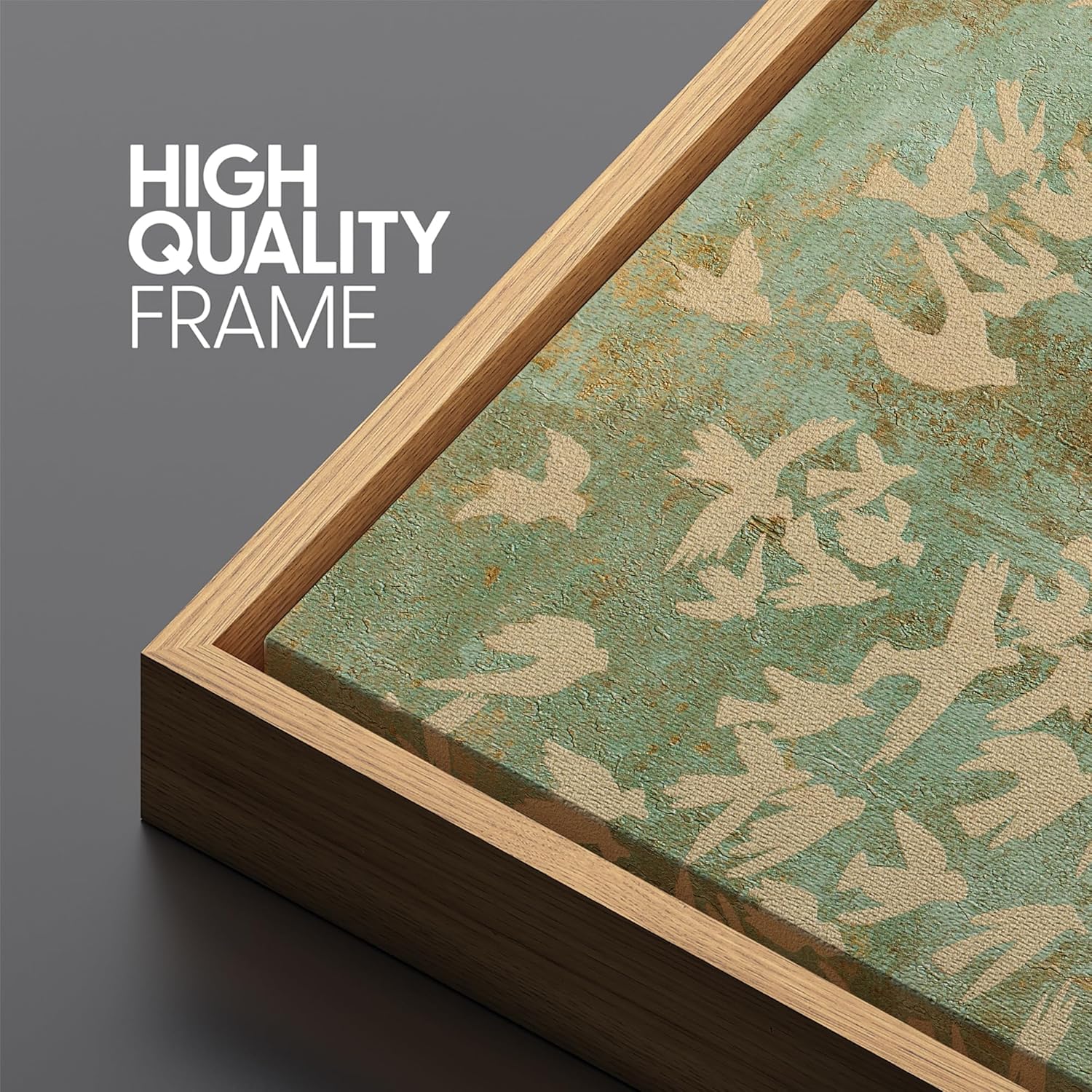 MUDECOR Large Framed Canvas Print Wall Art Rustic Birds in Flight Abstract Pattern Antique Retro Fine Art Illustrations Decorative Colorful for Bedroom - 60"x20"