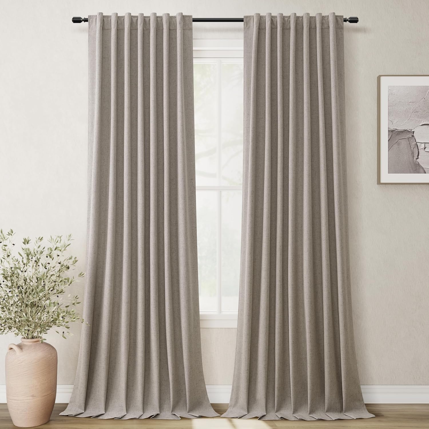 BOODII Dark Taupe Linen Blackout Curtains for Bedroom 84 Inch Length 2 Panels Set Room Darkening Curtains Black Out Curtain Neutral Thermal Insulated Living Room Nursery Drapes Back Tab 52x84