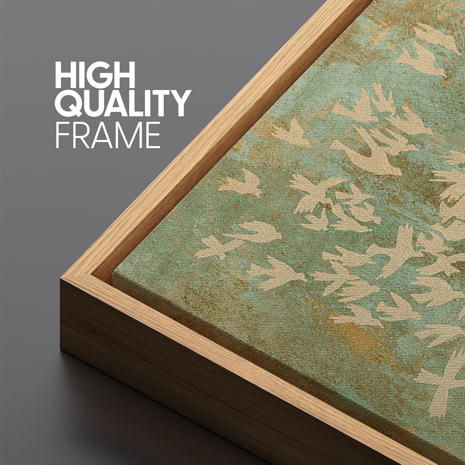 MUDECOR Extra Large Framed Canvas Print Wall Art Rustic Birds in Flight Abstract Pattern Antique Retro Fine Art Illustrations Decorative Colorful for Bedroom - 60"x30"