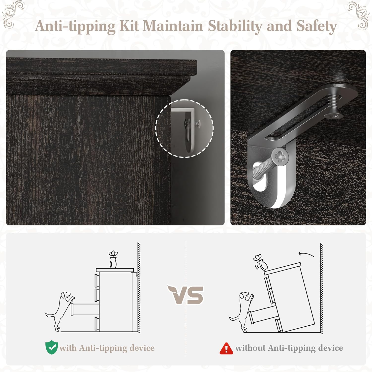 - [Easy assembly]: Includes clear instructions and all necessary hardware for quick setup. Plus, EnHomee dresser with anti-tip kit ensures added safety and security for your family. If you have any issues you meet, let us know without hesitation and you will get a satisfactory solution.