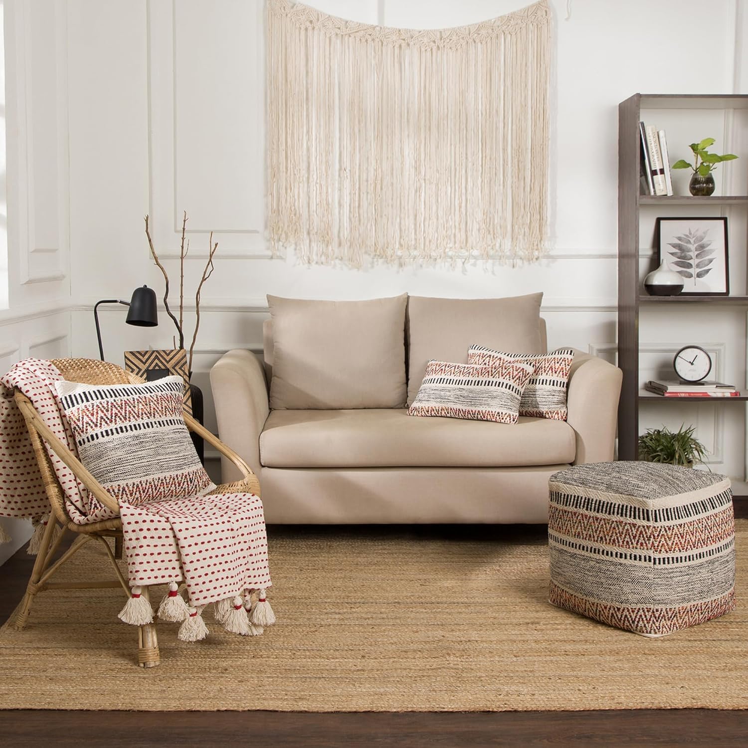 - BEAUTIFULLY DESIGNED AND HANDCRAFTED: The 100% cotton indoor patio Poof comes in a variety of textured patterns that is made on handlooms by skilled artisans offering an excellent choice for foot stool and a convenient way to add comfort and style to your space. Choose your indoor hassock from wide options available that are handcrafted by mix and match of weaves, tassels and prints. It compliments modern, contemporary, boho or farmhouse decor.