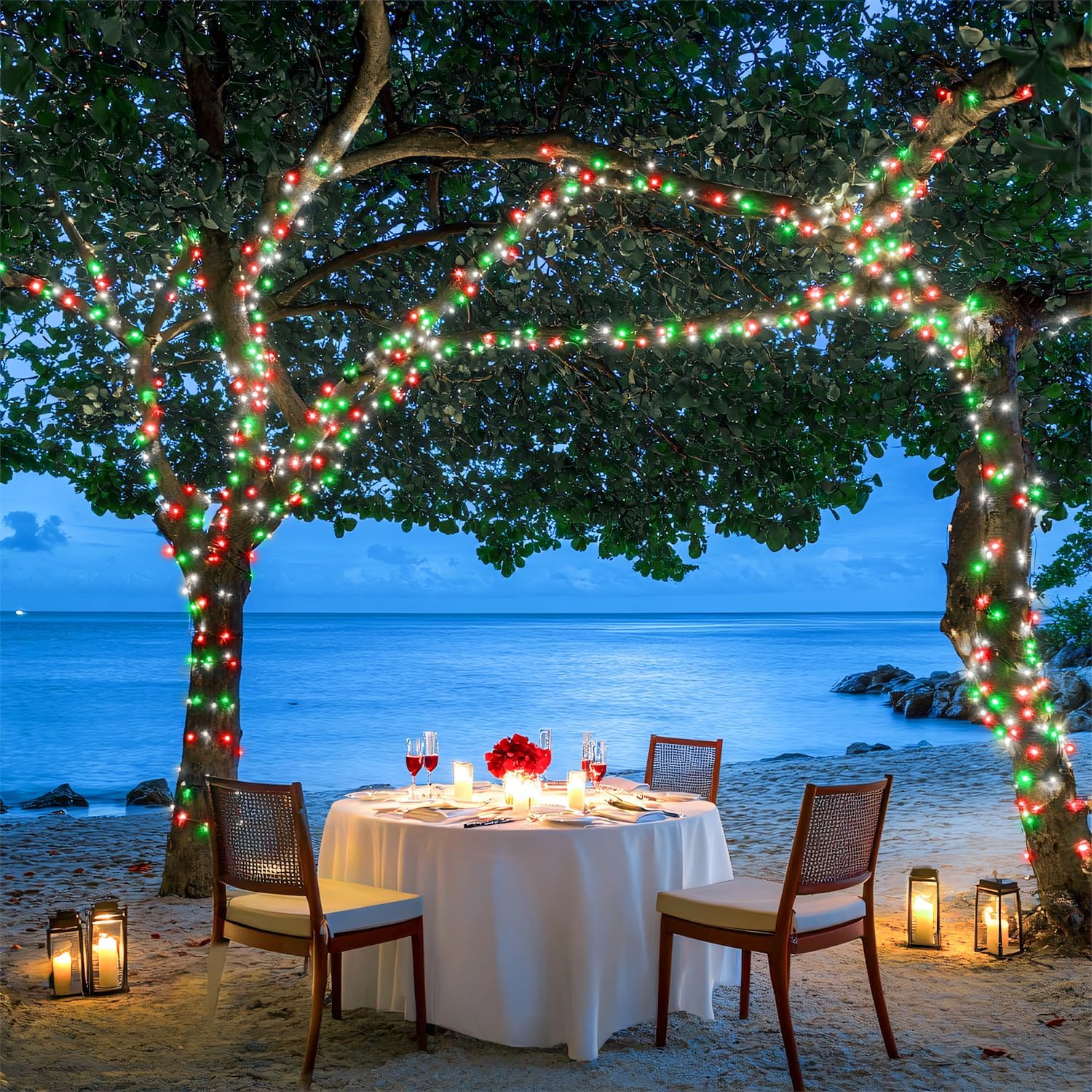 JMEXSUSS Connectable Red White and Green Christmas Lights, 8 Modes 100 LED Twinkle String Lights Indoor, Clear Wire Plug-in String Lights Outdoor Waterproof