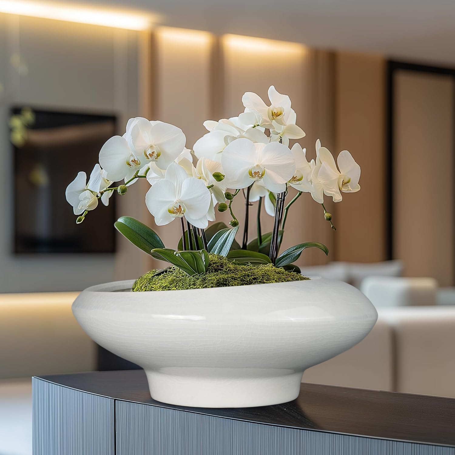 - Versatile Plant Compatibility: The ceramic planter is suitablie for various plants, including bonsai tree, succulents, orchid, cacti, aloes, money tree, zz plants, ivy, bromeliads, lemon tree, jasminum spp, mentha spp, mini ficus, pothos, and more