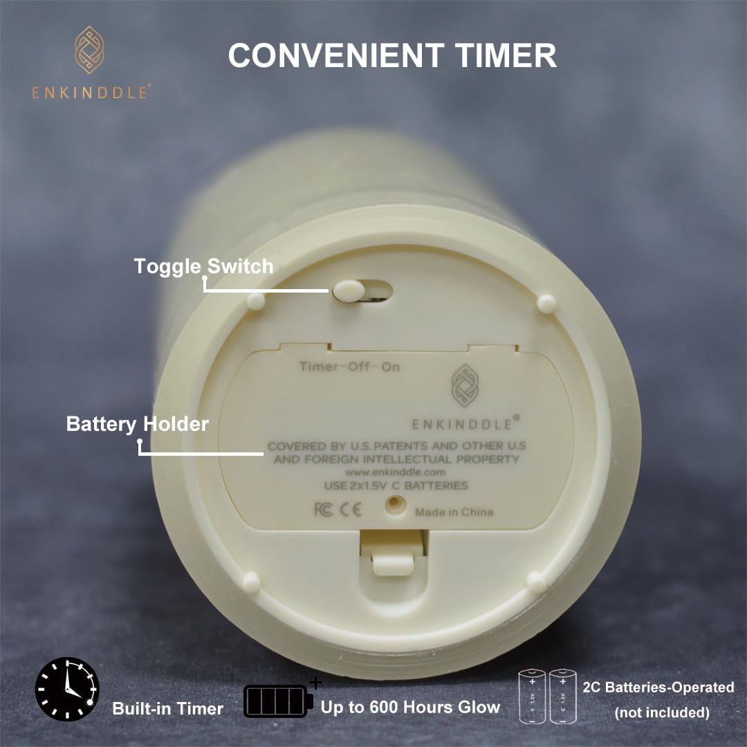 - Battery Operated for Versatility: Powered by 2 C batteries (sold separately), these flameless candles offer up to 600 hours of beautiful, flickering light before needing a battery replacement.