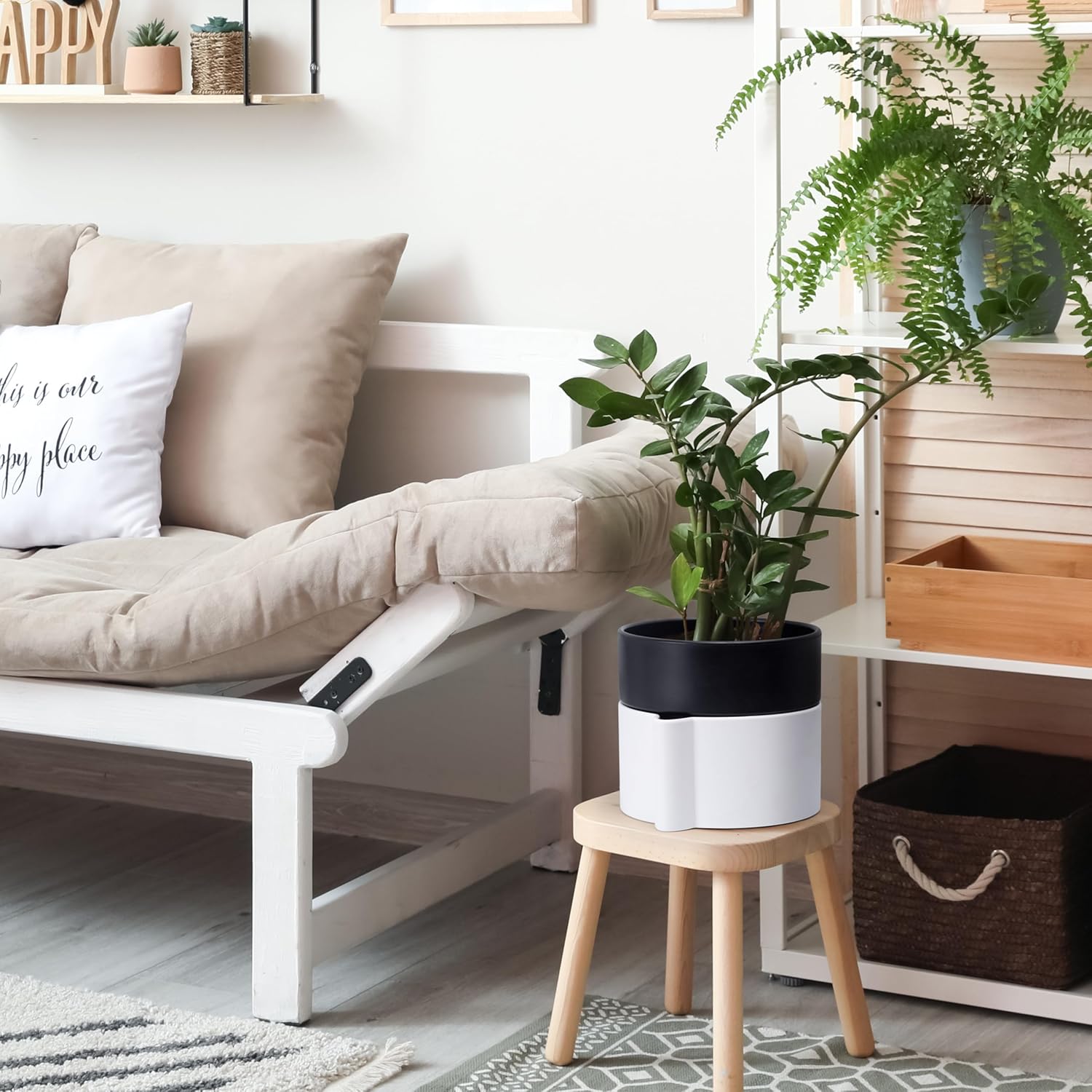 8 Inch Self-Watering Planter Pot with Terracotta Insert, Deep Water Reservoir, and Ceramic-Alike BPA-Free Plastic Planter Pot for Plant, Modern Planter for Houseplants, White/Black, 53-B-T-4