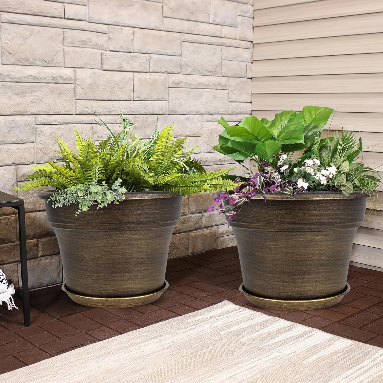 - 【TRADITIONAL DESIGN】Plastic planters for indoor plants with trays are designed in dark gold colors & a classic round look, which allow this pot to fit into any indoor & outdoor setting. With these golded flower pots, it could adds fresh, decorative flair to your home. Decorate your windowsill, desktop, shelf, bedroom, living room, kitchen, garden, office with our 10 inch plastic plant pot.