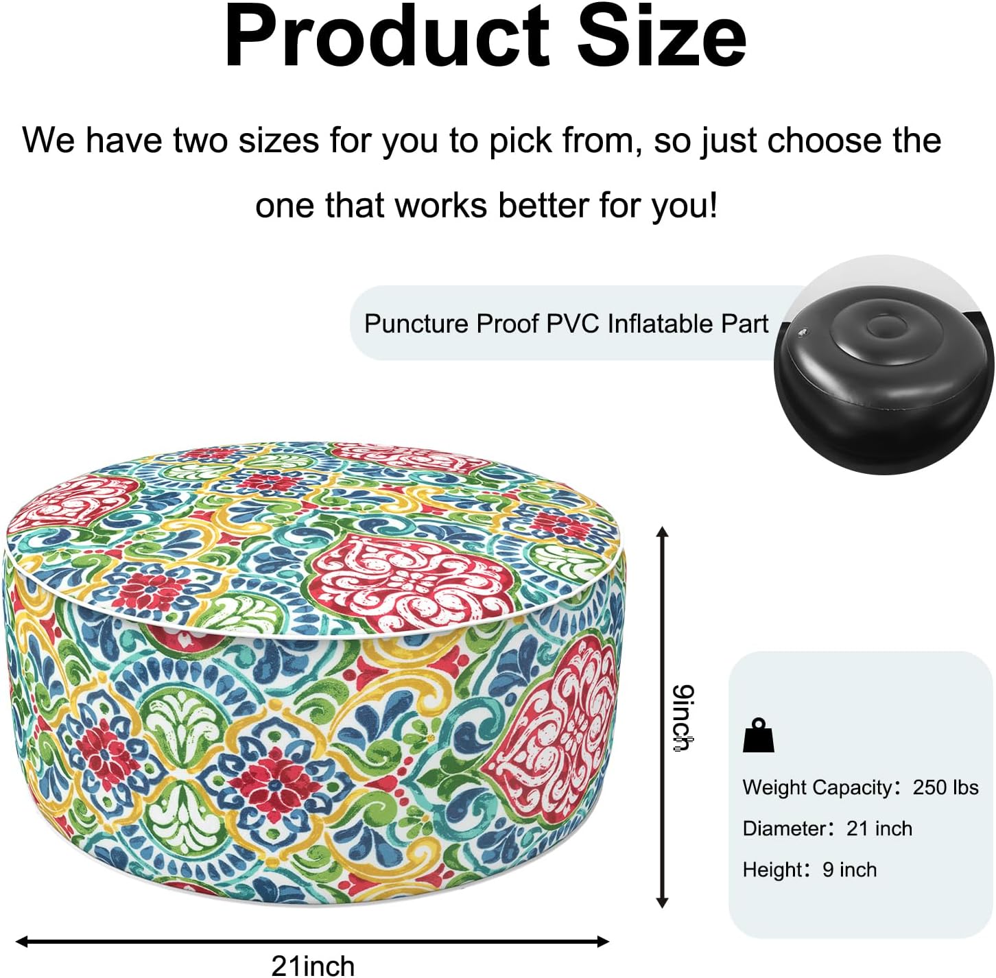 - ăPACKAGE INCLUDINGă - Foot pump not included and it NEEDS to be purchased SEPARATELY. The package contains one thick PVC explosion-proof liner inflatable ottoman inner with dimension D21 x H9 and one printed inflatable footrest stool cover