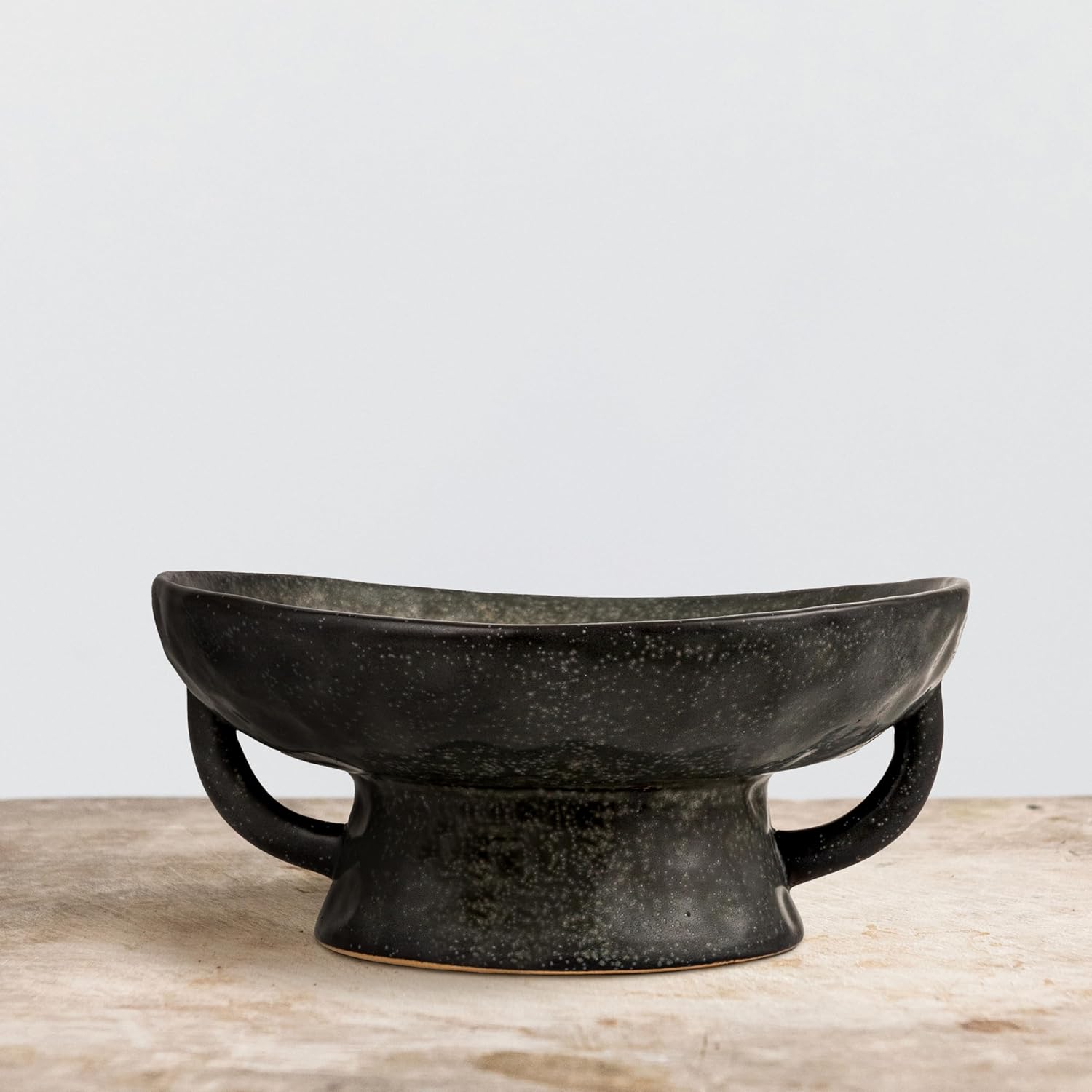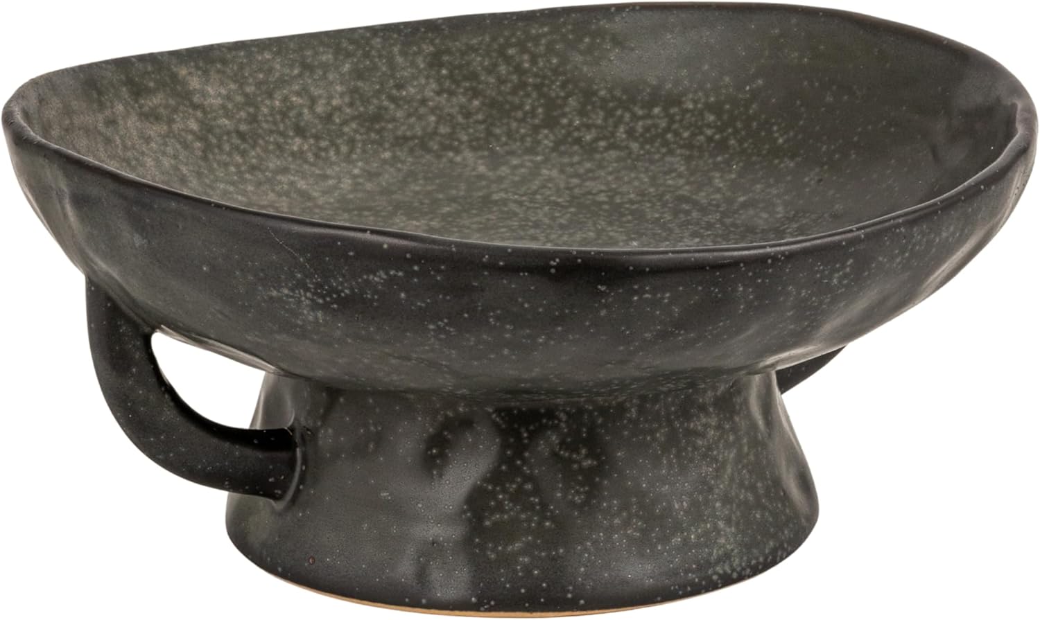 Creative Co-Op Stoneware Footed Pedestal/Bowl with Handles, Reactive Glaze, Black