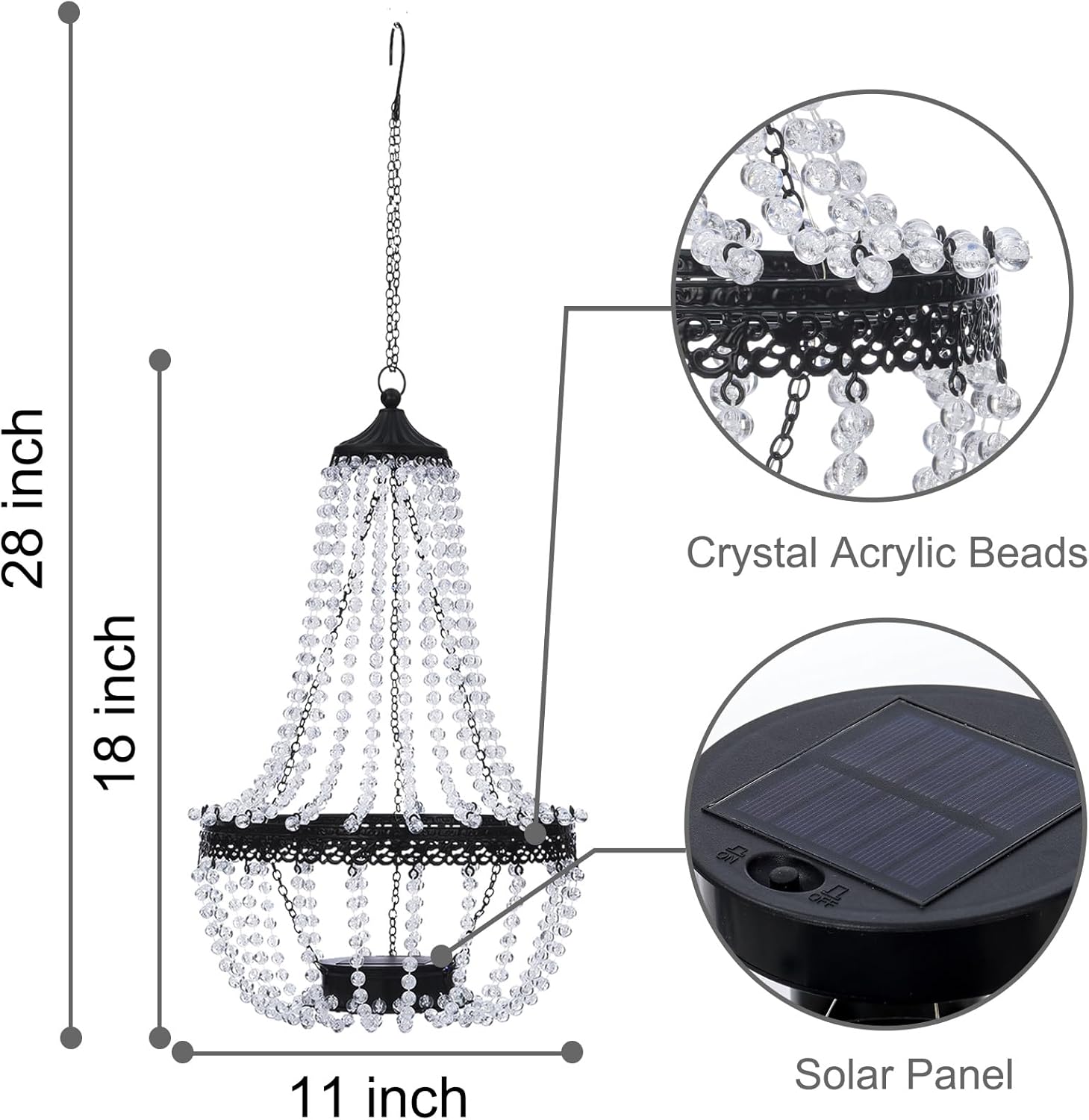 - Wide Application: This gorgeous crystal chandelier is not only a lamp, but also an eye-catching decoration. This solar powered chandelier can be hung from branches and decking, adding style and sparkle to your weddings and other festival events