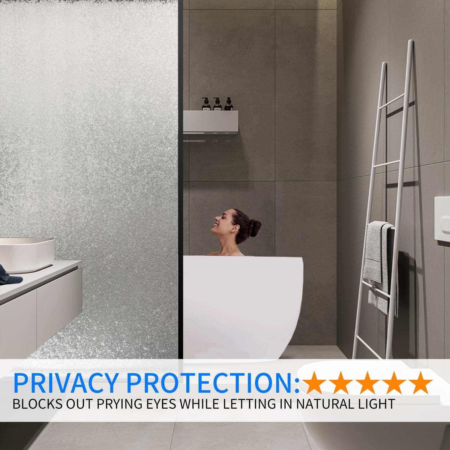 - 【Economical and Wide application】Frosted window privacy film, free of heavy & troublesome curtains or blinds, vinyl window coverings paper simple decorative make the life easier and better, glass door, bathroom, bath window , home, kitchen, french door, front door side window, living room, meeting room, office, sitting room, house, patio door, bedroom etc, window privacy screen, sliding door, if you want privacy and light.