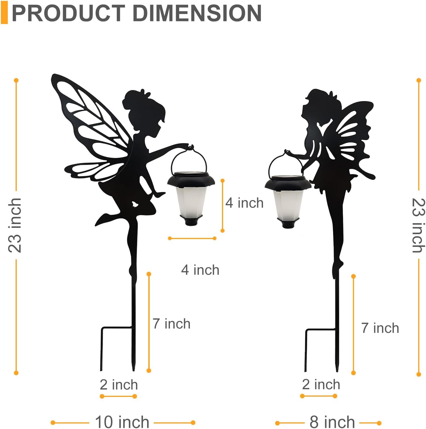Solar Fairy Garden Stake Decorative Lantern, 2 Pack Metal Fairy Angel Garden Silhouette Lights for Lawn, Pathway, Patio, Yard Outdoor Decor