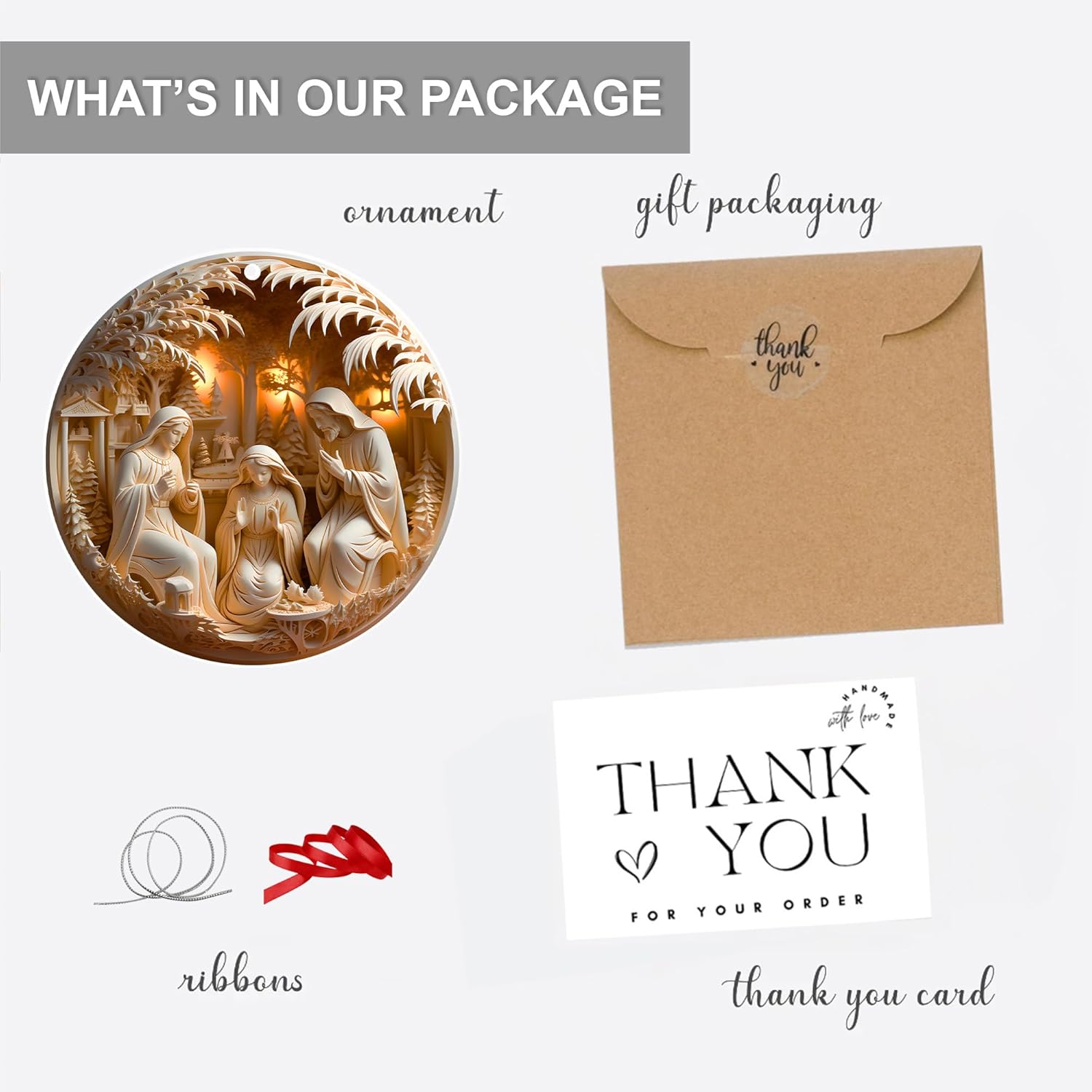Jabihome Christmas Ornaments 2025, Exchange for Women, Men, Collectible Dated Year Ornaments for Tree, Unique Acrylic Suncatcher, Printed Stained Glass Effect Decor (Nativity Scene)