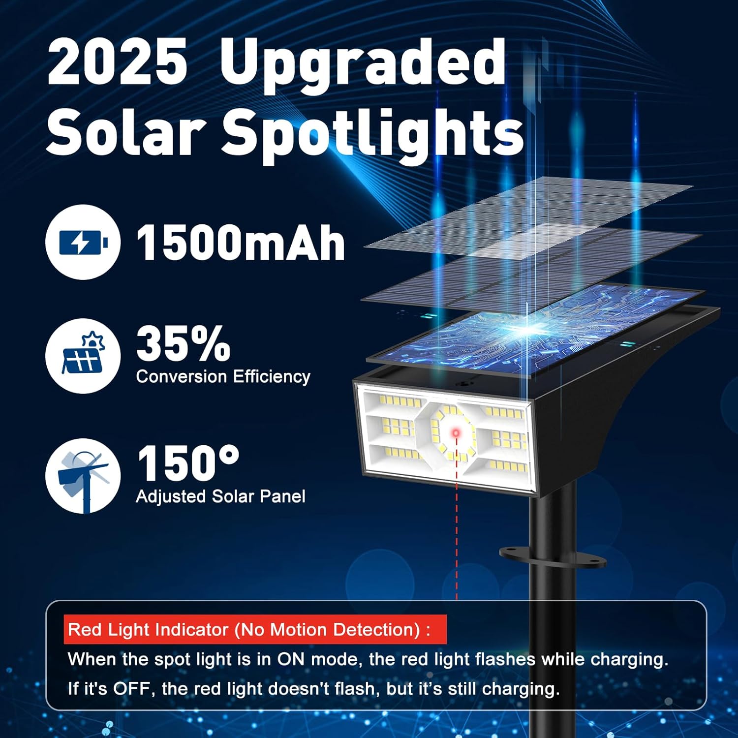 - ใ๐๐จ๐ง๐ -๐๐๐ฌ๐ญ๐ข๐ง๐ ๐๐ฅ๐ฅ๐ฎ๐ฆ๐ข๐ง๐๐ญ๐ข๐จ๐งใ Equipped with 56 LEDs and a built-in 1500mAh rechargeable battery,solar spotlights deliver long-lasting, reliable lighting for 10โ24 hours depending on sunlight exposure. The 150ยฐ adjustable head allows you to direct light exactly where it's needed, creating the perfect lighting effect for any area. Harness the power of the sun to brighten your garden, yard, or pathway without increasing your electricity bill. Our solar landscape spotlights are longer-lasting, brighter, and more durable than typical solar spot lights on the market.