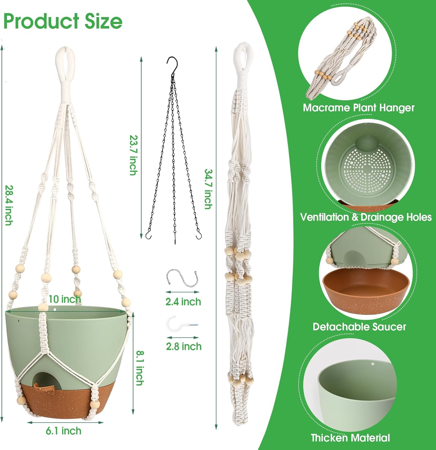 - Excellent Drainage Holes & Watering Lip: Hanging planter is equipped with multiple drainage hole, which keep soil drained and ventilated, and promote root growth to keep plants healthy.