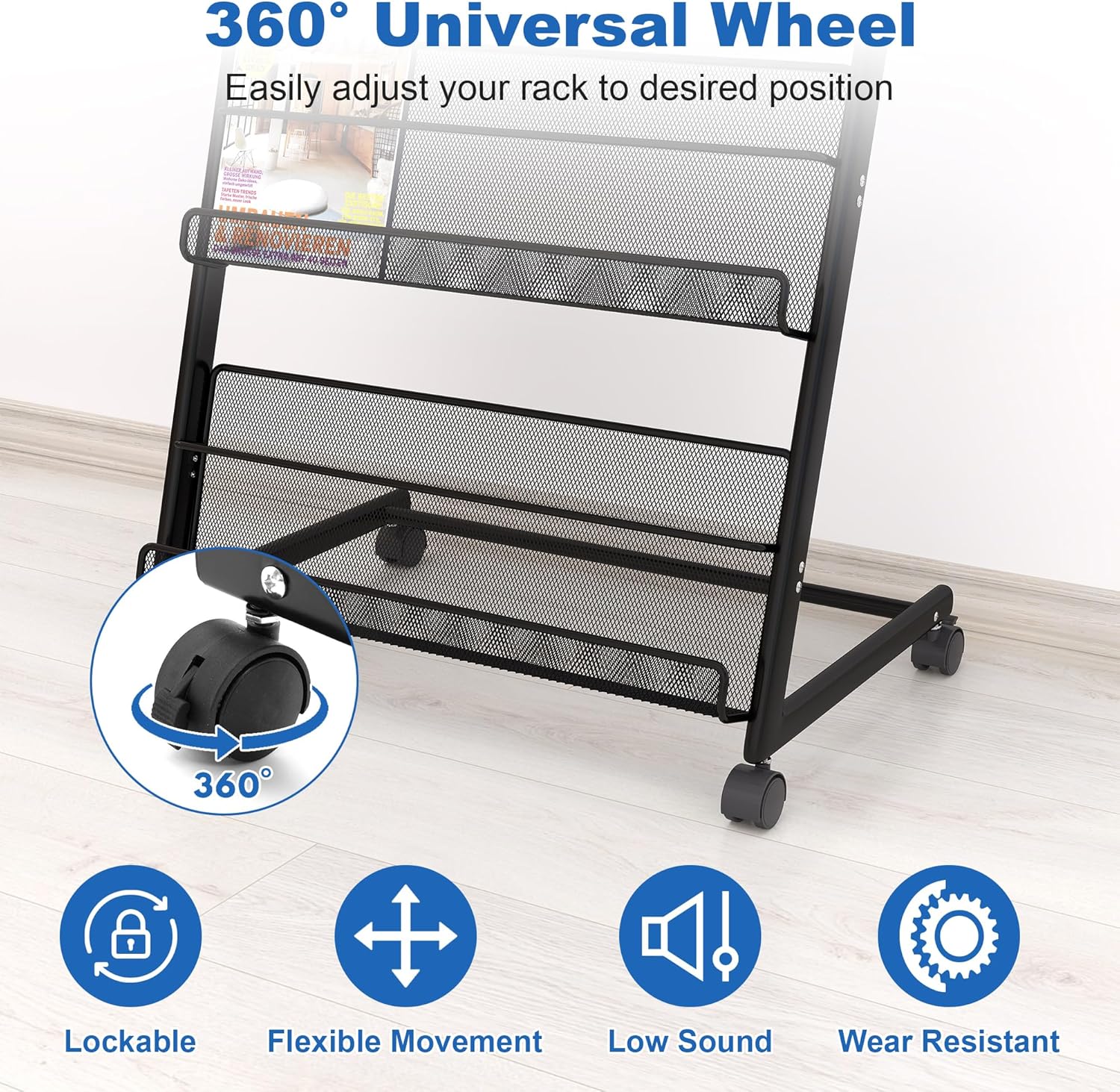 - 📕【EASY TO INSTALL】This magazine holder floor with wheels package contains installation tools and easy to understand instructions, assembling this magazine rack will take you little time. We provide after-sales service, if you have any questions about the product, you can contact us in time, we will help you solve it within 24 hours!
