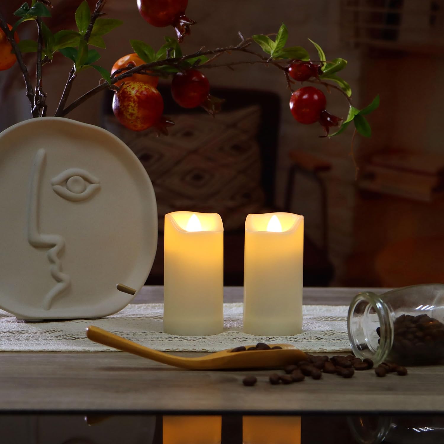 - For outdoor and indoor use. These plastic battery candles are waterproof and designed for outdoor use to decorate your hurricane lantern, garden, yard, patio, swimming pool, or an outdoor activity such as a BBQ party. Of course, the resin pillar candle can be used indoor to decorate your fireplace and rooms as well. Flameless candle creates a warm, peace, and romantic ambiance.