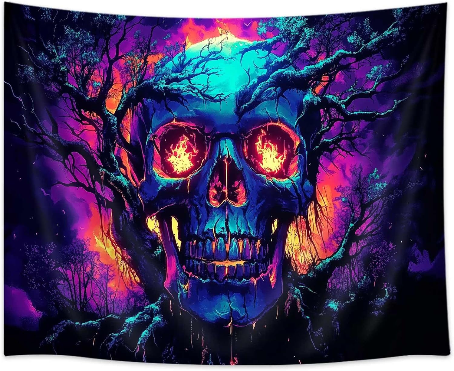 Xiaoput Blacklight Fire Skull Tapestry for Bedroom, Trippy UV Reactive Burning Skeleton Forest Wall Hanging Tapestries, Scary Dark Horror Glow in the Dark Tapestries for Living Room Home Dorm 40X30IN