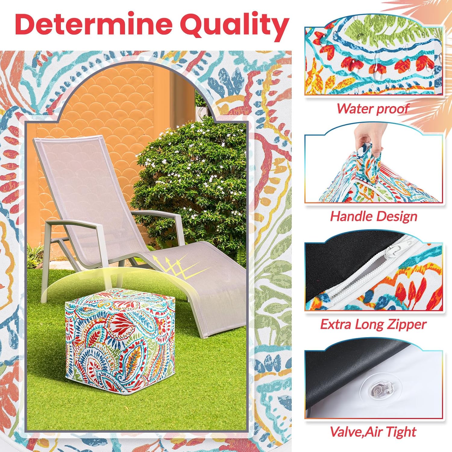 - Durable and Waterproof: the inflatable ottoman is made of quality plastic and cloth, water and fade resistant, suitable for both indoor and outdoor use; The distinctive paisley pattern provides a lovely seating and decoration for your home