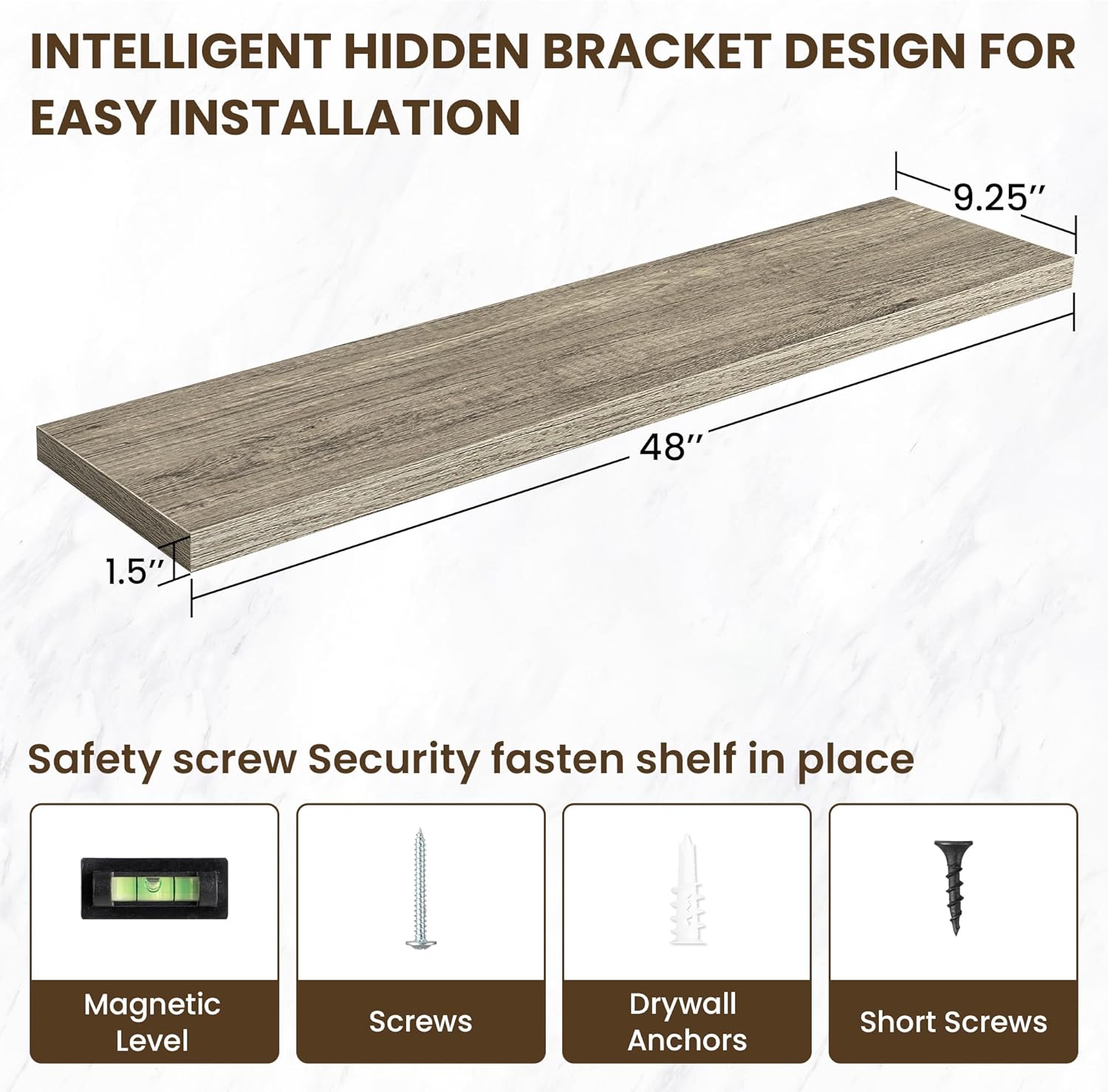 48 Inch Floating Shelves, 12 Inch Deep Floating Shelves for Wall, Floating Shelf with Invisible Brackets, 12 inch Deep Wall Shelves for Bathroom, Bedroom, Living Room, Vintage Gray Oak