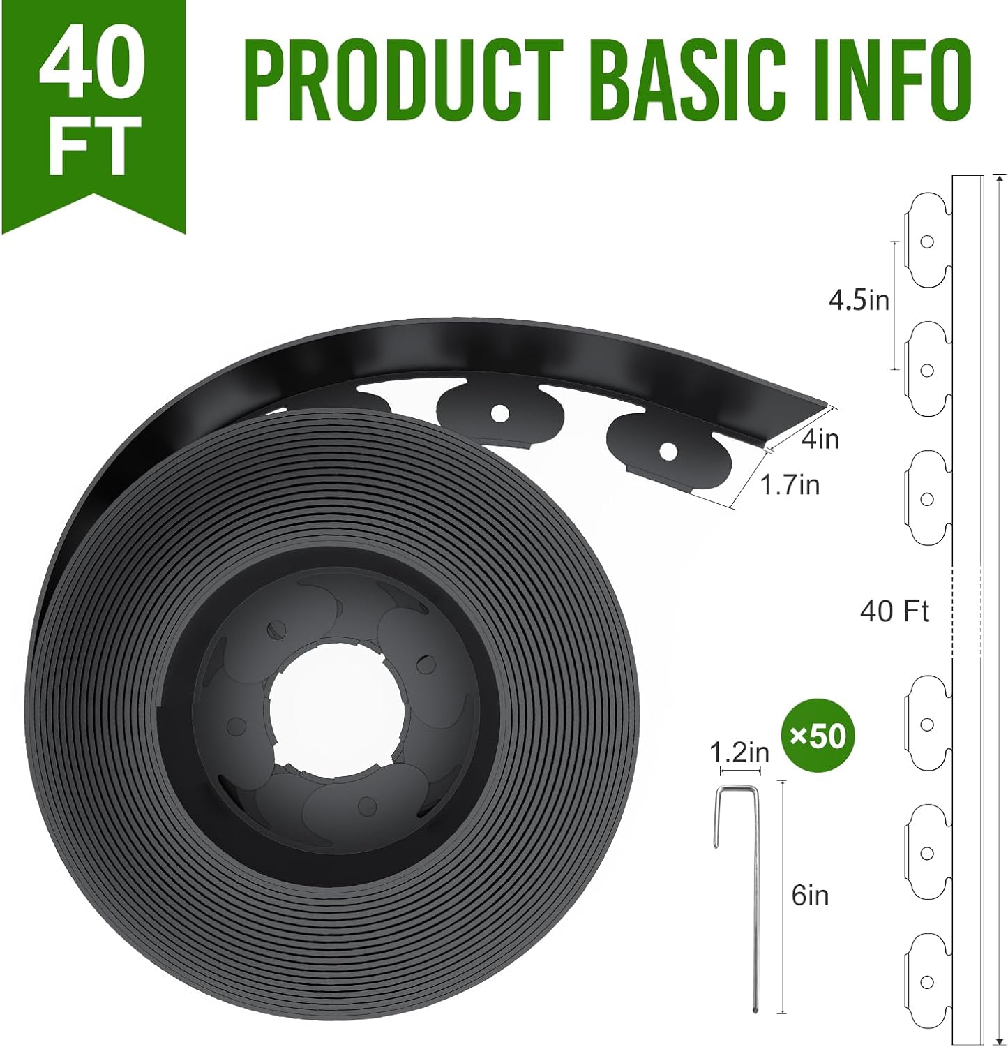 - What You Get: Landscape edging kit included a 40ft edging coil 4 inch tall, 50Pcs metal staples. More staples help you design more professional landscape