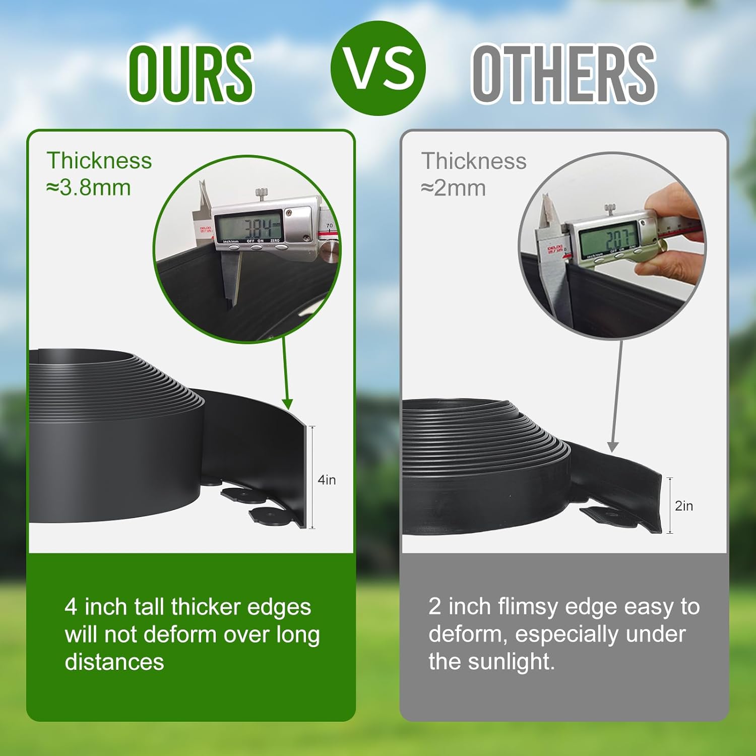 - Durable and Flexible: Garden border edging made of premium high density PE material, can be easily bent into any shape as the project need. Thickened edging make it less prone to deform when shaping into straight line