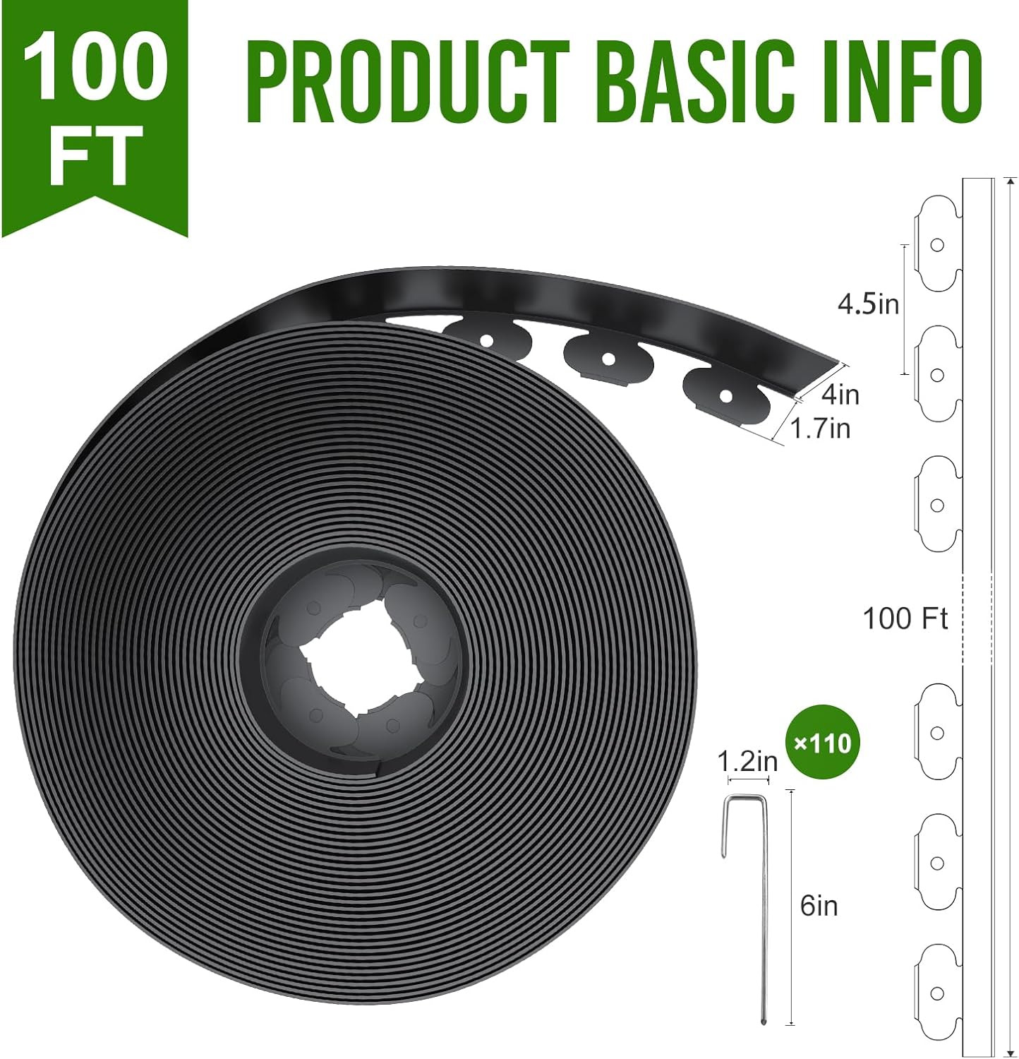- What You Get: Landscape edging kit included a 100ft edging coil 4 inch tall, 110Pcs metal staples. More staples help you design more professional landscape