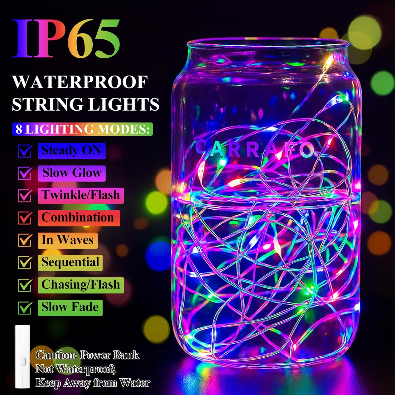 - Tangle-Free & Water-Resistant: Say goodbye to messy wires! These IP65-rated mini fairy lights battery operated feature tangle-free reinforced wiring that withstands humidity, perfect for mason jars and indoor plants. Built to last, they outshine ordinary battery string lights. Note: the included power bank is not waterproof—keep it dry for safe use