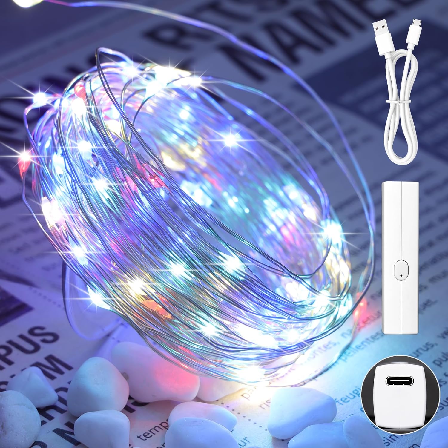 - 2025 Specially Developed Battery Fairy Lights: Say goodbye to disposable batteries and embrace sustainability! Our rechargeable Type-C power bank (cable included) powers the string lights for 30+ hours of cordless glow. When it’s time to recharge, simply detach the compact, lipstick-sized power bank—no need to move the entire string lights. Designed with an innovative, patented structure, this power bank offers a smarter, greener way to shine