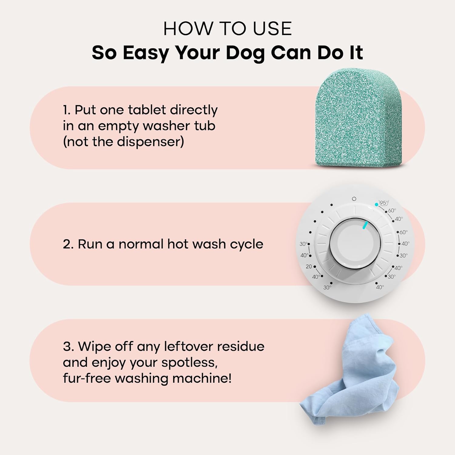 - Reduce Excessive Pet Hair Accumulation: Specially formulated for multiple or large pet households, the blend of active enzymes in our washer cleaner tablets helps dissolve hair and fur, reducing clogs and accumulation!
