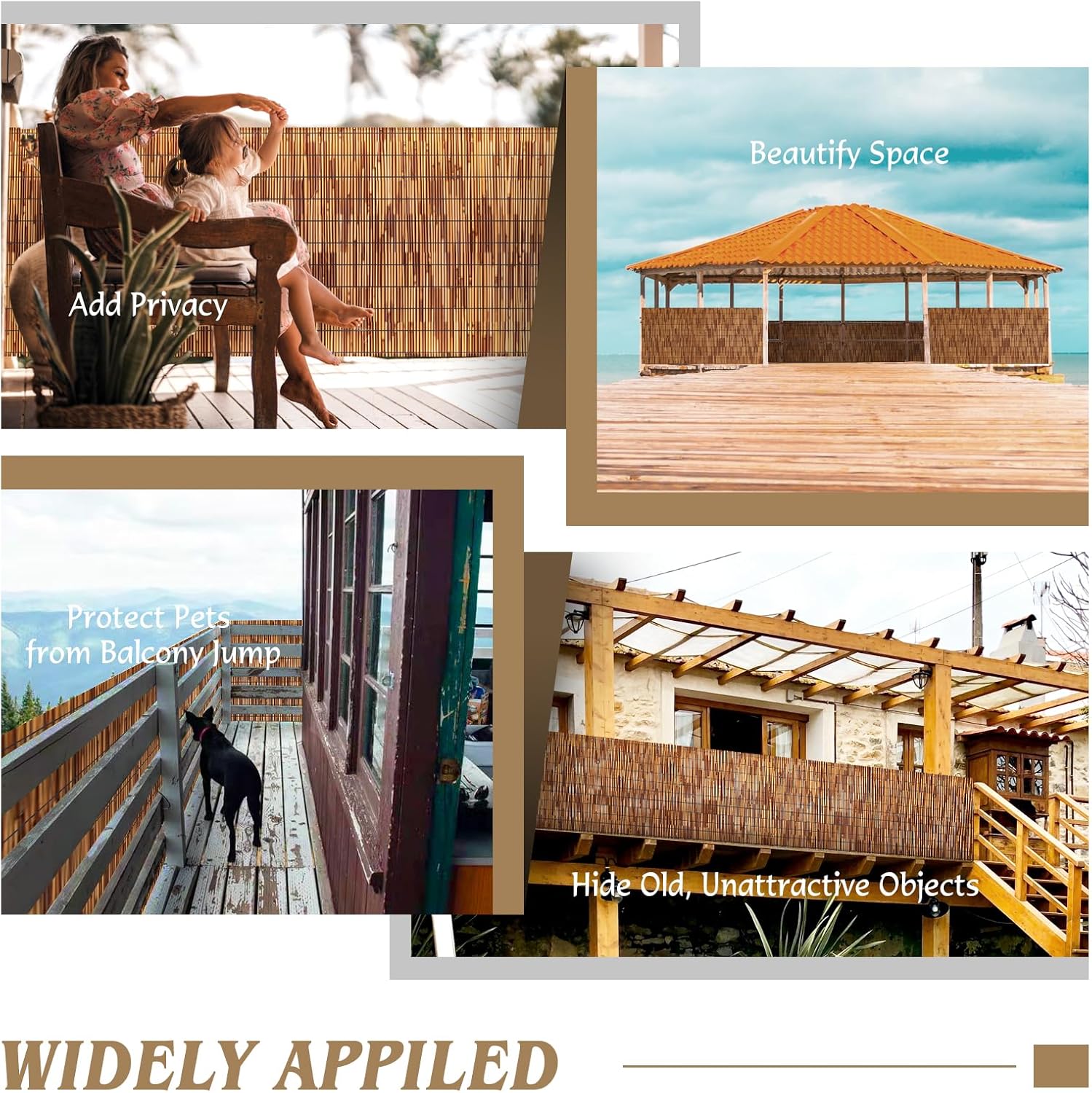 - 【1-PACK MULTI-FUNCTIONAL REED FENCING】- This set has 1 pack reed . Use them to hide unattractive objects or old fence, add more privacy, provide shade to your balcony/patio, stop pets from jumping from balcony, adorn swimming pool, giving a rustic and natural look to your space