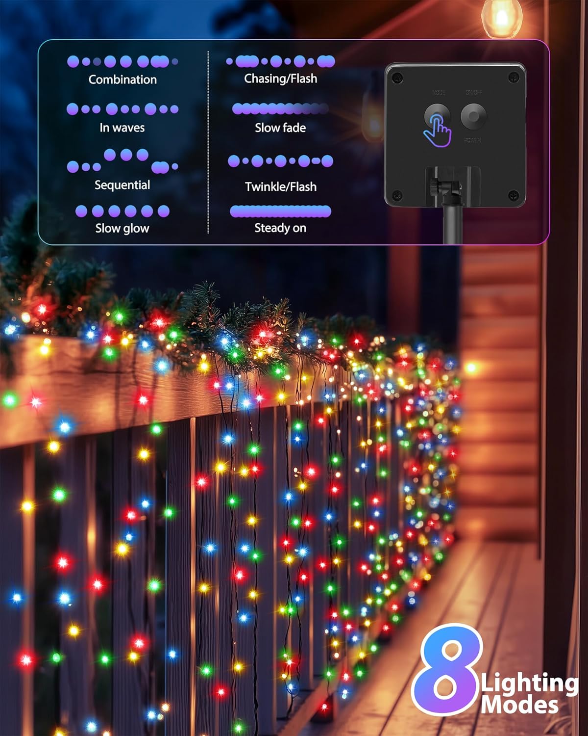 Brightown 2 Pack Solar String Lights Outdoor, Each 46Ft 120 LED Solar String Lights for Outside with 8 Modes, IP65 Waterproof Solar Outdoor Lights for Patio Garden Christmas Decorations, Multicolor