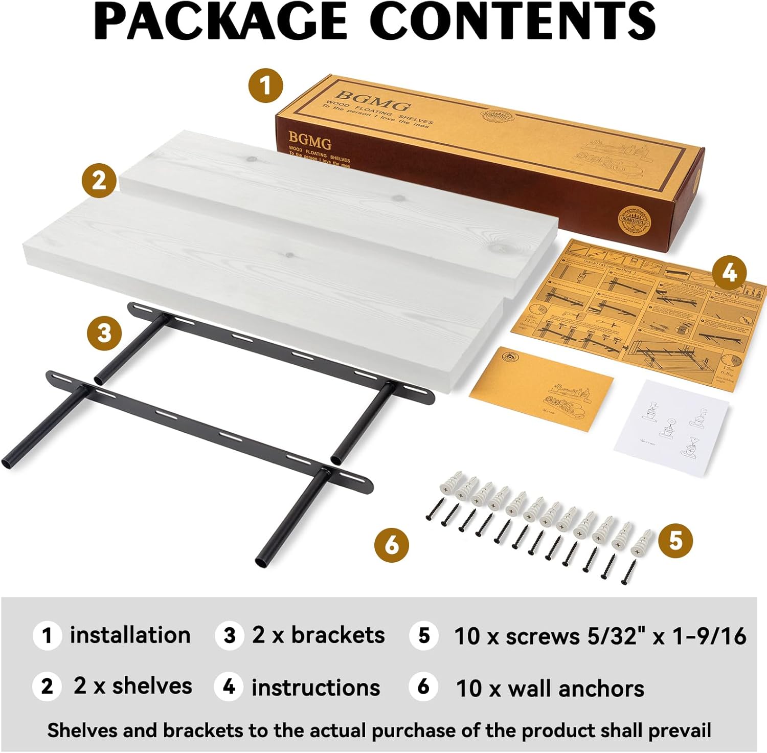 - EASY TO INSTALL: These 16 inch floating shelves come with stainless steel galvanized invisible brackets, toggle bolts for drywall, and simple instructions to help you install them. These wall shelves are easy to assemble, requiring only two boards and the necessary screws and hardware. We also provide detailed instructions for quick and easy assembly