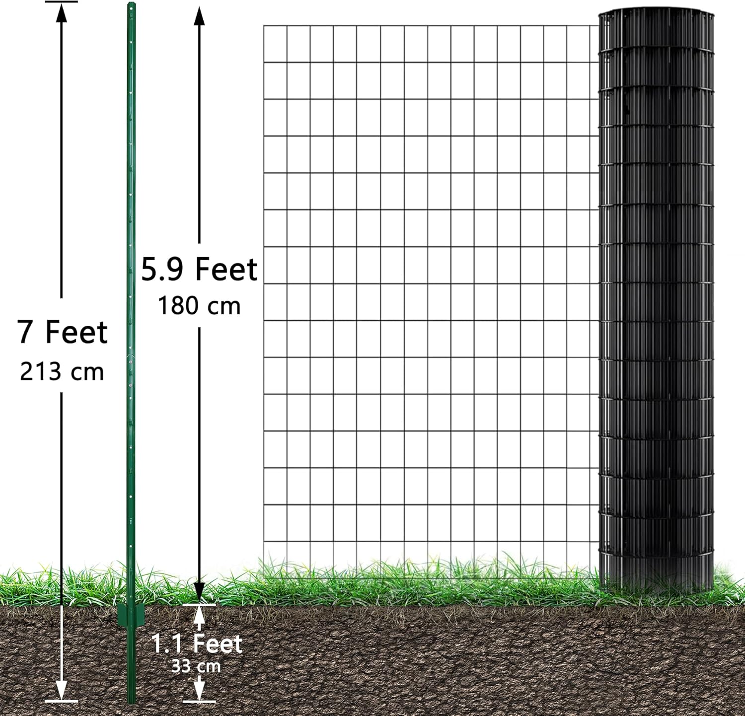 - 【SIZE】Pack of 10.This fence post is composed of two sections. One section measures 4 ft and the other is 3 ft. When installing, please first insert the 4 - ft section into the ground for fixation. After that, use screws to securely attach the 3 - ft section on top. This two - part design not only ensures easy installation but also provides enhanced stability for various fencing needs. The height of each fence post is 7 ft in total, of which 1 ft is buried underground, perfectly suitable for 6 ft welded wire, hardware cloth, steel wire, ropes, and other utility fence applications.