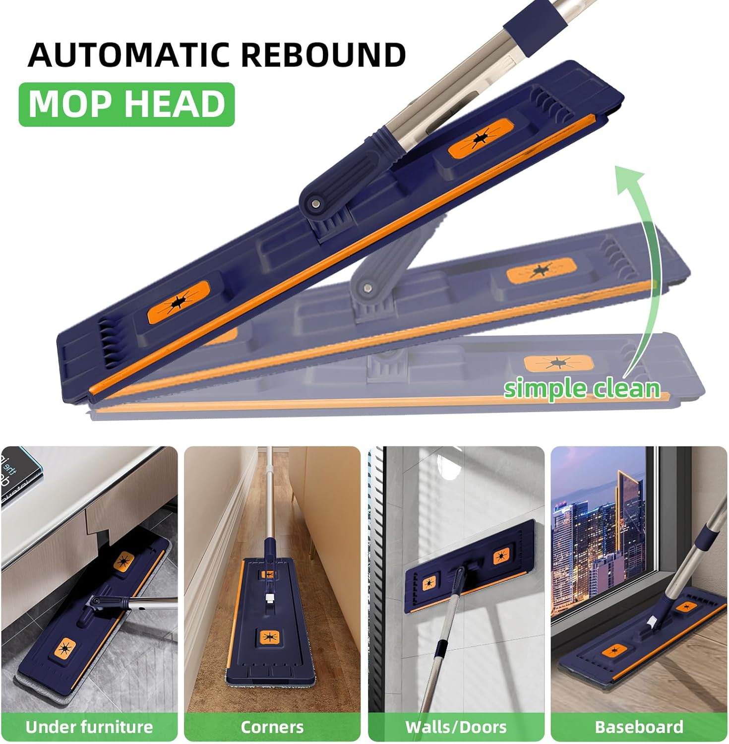 - Self-Wringing Mop for Easy Cleaning: The mop with wringer set features an innovative self-wringing system, making it easy to remove excess water from the mop head. This ensures you can adjust the moisture level for both wet and dry use, preventing water damage to sensitive surfaces like hardwood floors and wood floors. Perfect for maintaining your floors without leaving them too wet.