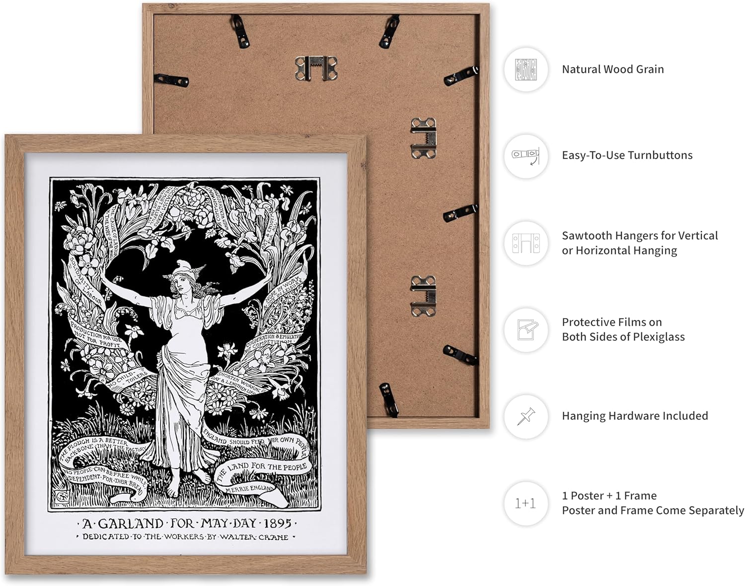 Poster Master Vintage Walter Crane Poster - Retro A Garland for May Day Print - Socialist Art - Gift for Him, Her, Men, Women - Wall Decor for Home, Office, Living Room, 8x10 Beige Framed