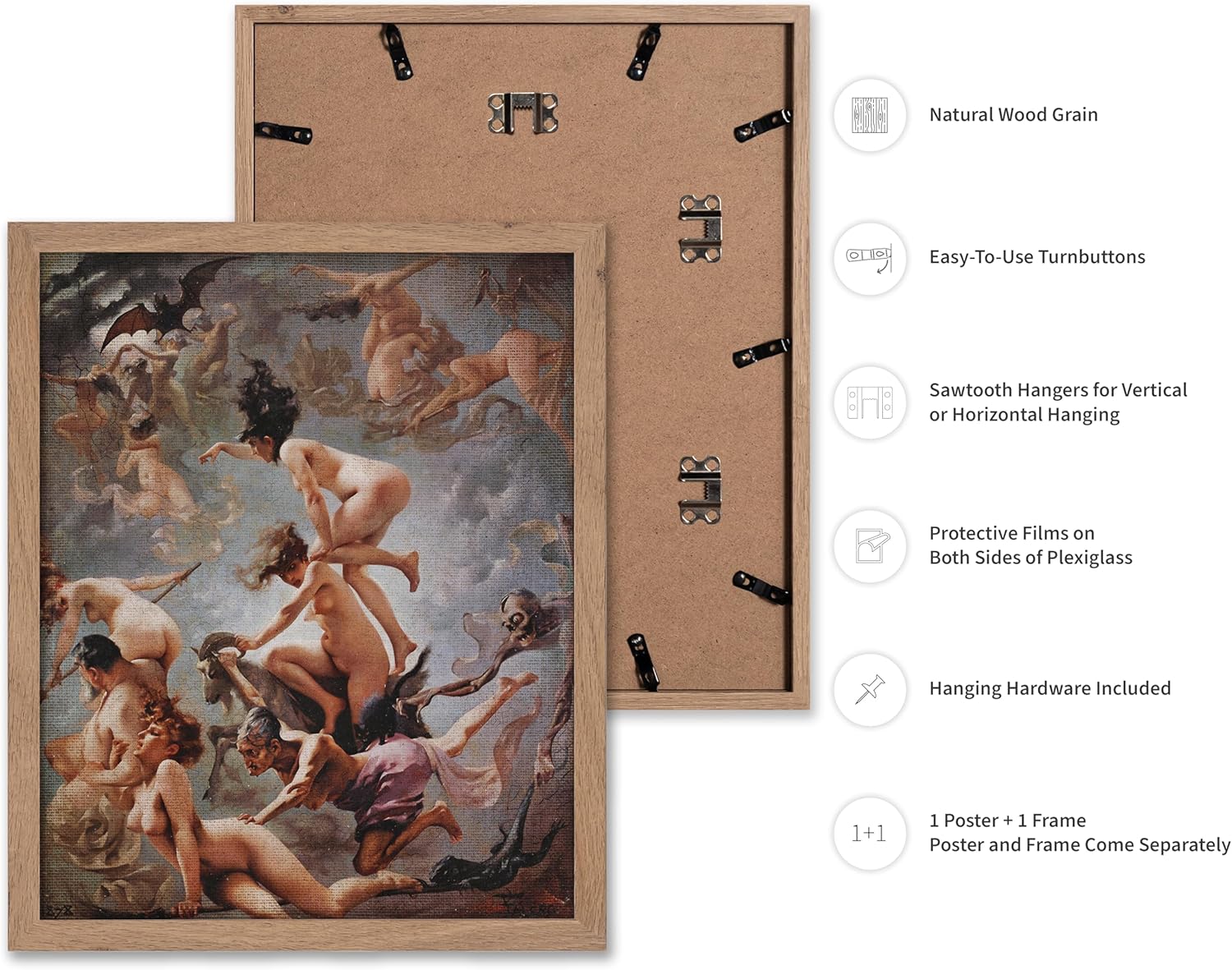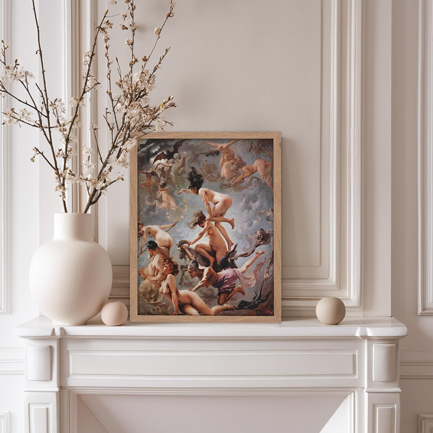 Poster Master Vintage Luis Ricardo Falero Poster - Retro Occult Print - Gift for Gothic, Horror Fan - Witches Going to their Sabbath, Pagan - Wall Decor for Bedroom, Dorm, 11x14 Beige Framed