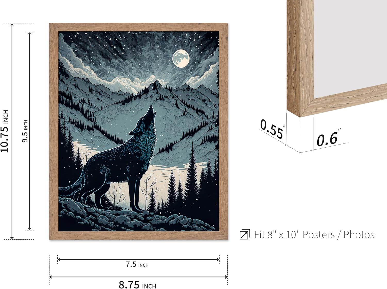 Poster Master Vintage Illustration Poster - Retro Animal Print - Gift for Artist, Friend - Wolf Howling at the Moon, Mountain, Snow, Landscape - Wall Decor for Home, Office, 8x10 Beige Framed