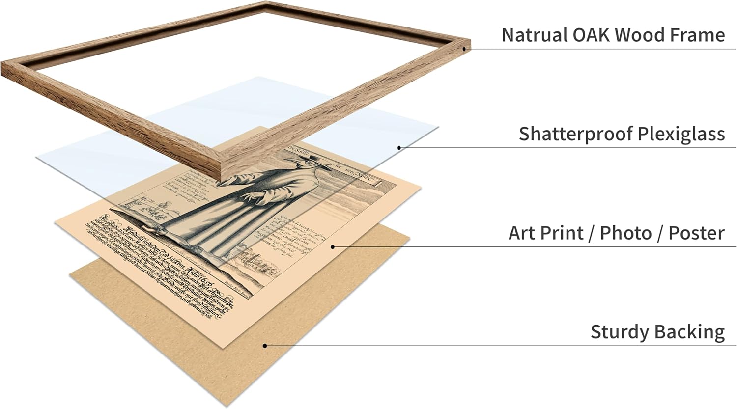 Poster Master Vintage Medieval Poster - Retro Illustration Print - Gift for Friend - Plague Doctor, Pandemic Mask, Physician, Black Death - Wall Decor for Home, Living Room, 8x10 Beige Framed