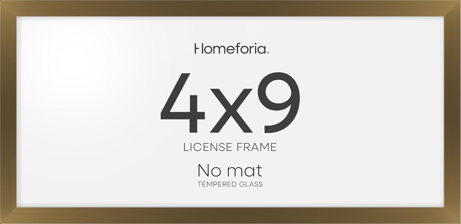 Homeforia 4x9 Business License Frame Bronze, High End Metal 4 x 9 Certificate Frame with Real Glass, 9x4 Document Frames for Wall or Tabletop, 4 by 9 Picture Frames, Tempered Glass, Wall Kit, Set of 1