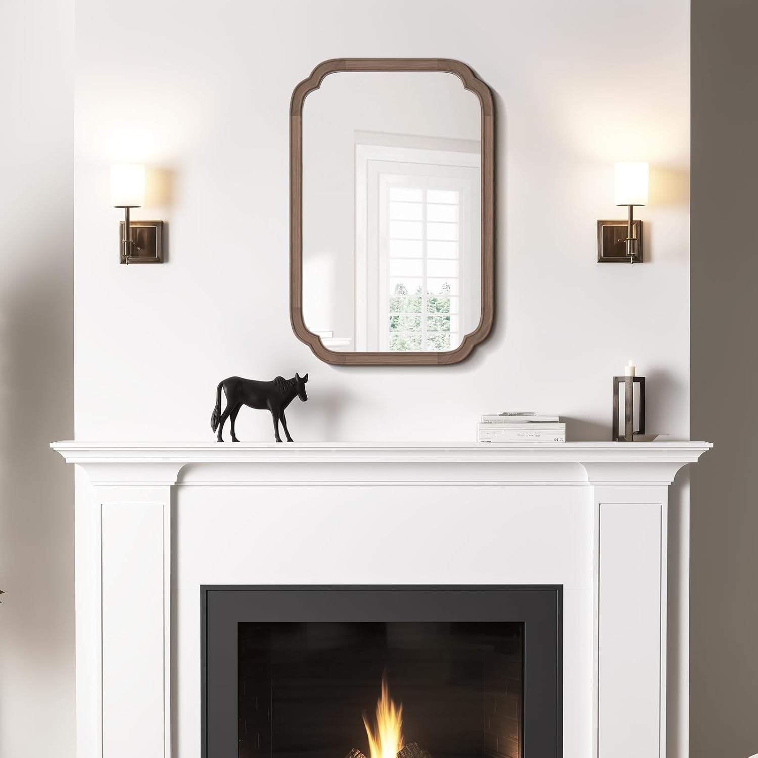 WallBeyond 20" x 30" Rounded Corner Arch Wall Mirror with Wood Frame for Entryway, Living Room or Bedroom Home Decor - Light Woodgrain [20" x 30" Walnut]