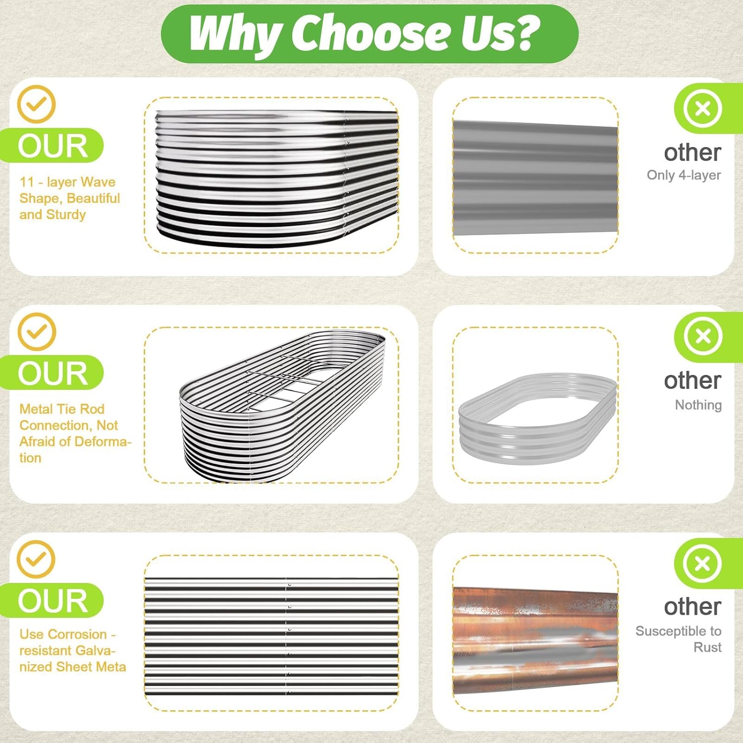 • Quick & Easy Assembly: With a straightforward structure and clear instructions, setting up your raised bed is a breeze.